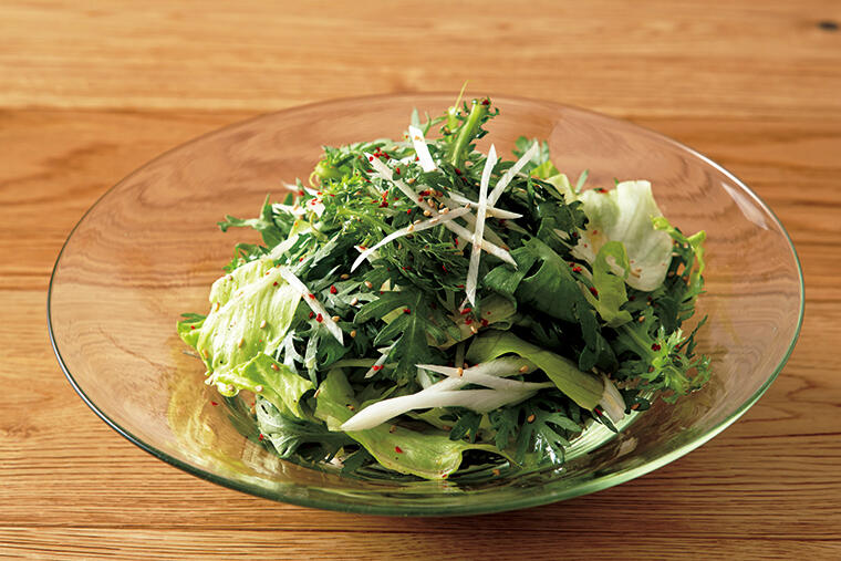 焼き肉のお供に。塩味の胡麻風味サラダです。春菊とねぎを加えて香りよく。日々の生活に取り入れやすい、ゆ...
