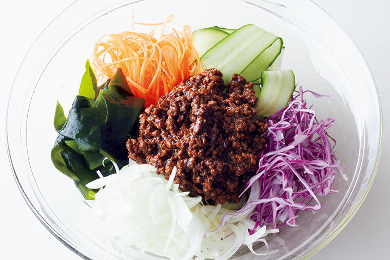 しっかりとした味わいに食欲がわく"肉味噌サラダ"