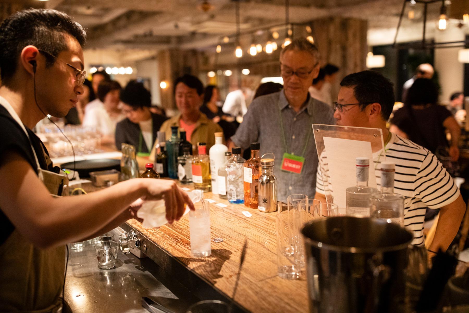 最後には質疑応答の時間も設けられ、「どんな言葉で伝えたら好みのジンに出会えるか」という酒好きの“部員”からの直球質問には、「“ホッとする味が飲みたい”とか、感覚的な気分を表す言葉を伝えると、選び手は薦めやすい。今日はぜひ色々味わってみて」(白土)という心強いアドバイスが。トークセッション終了後も、ボトルが並ぶバーカウンターに列が途切れることはなかった。