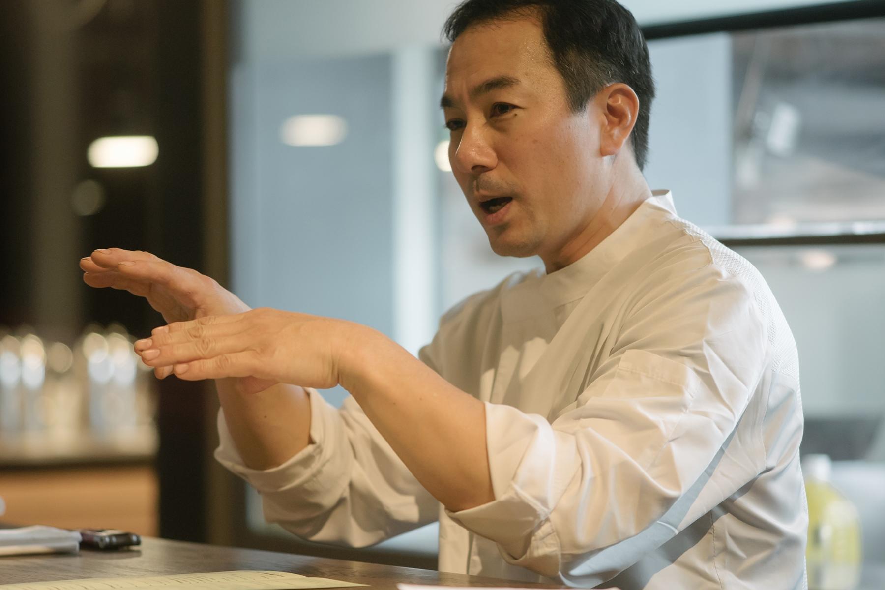「いまこの魚は、絶滅危惧に指定されているほどとても希少です。今回食材させてもらったアラレガコは、特有の漁法を守り、この味を後世に残すべく、絶えさせないように育てている方からから送ってもらったものです。アラレガコは産卵の仕方も変わっていて、あられが降る日にお腹を上に向けてあられにお腹を打たせて産卵をする、と言われています。もういろんなことが超越しているわけですよ!」