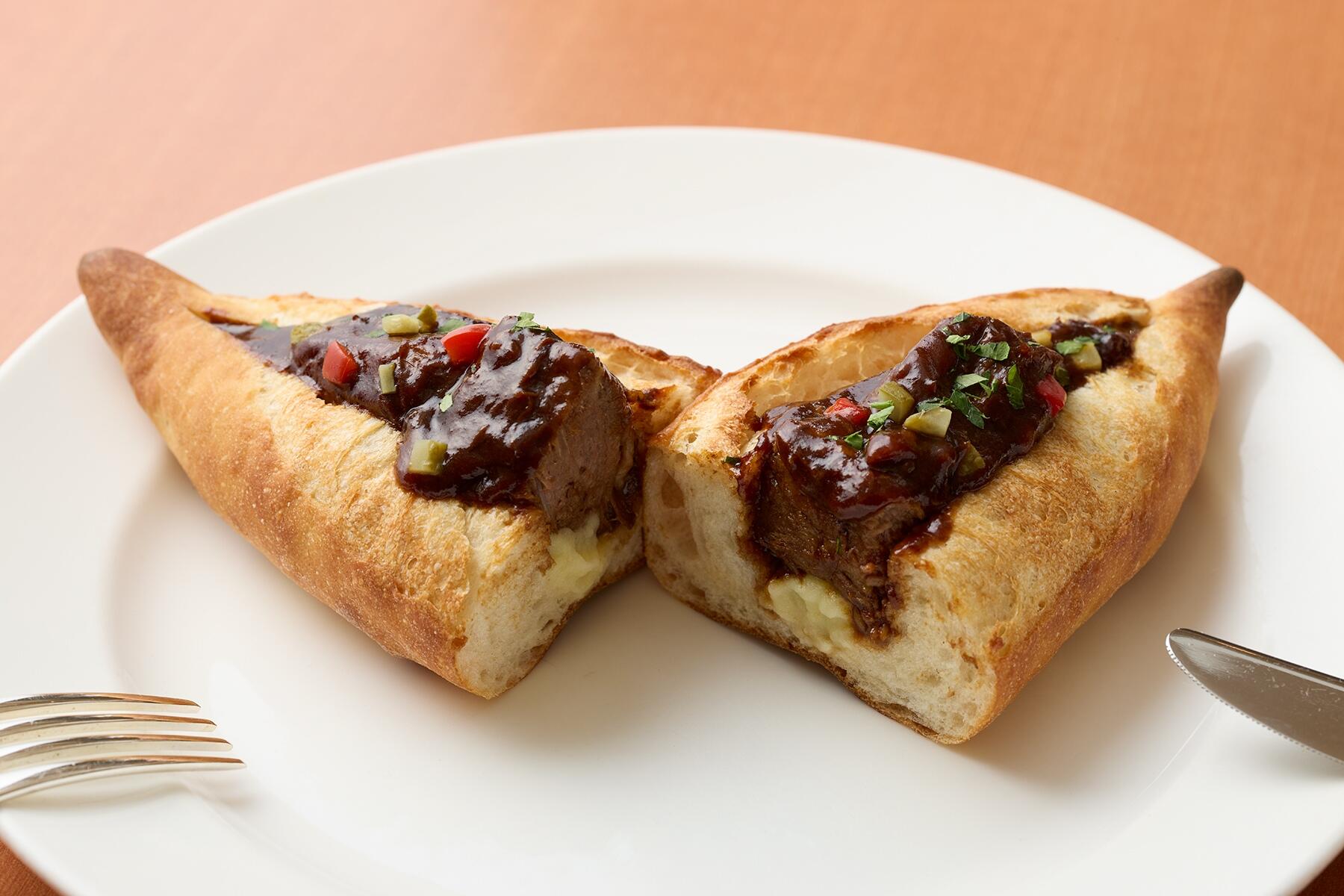 そしてお土産にもお薦めなのが、“和牛ビーフシチューパン”だ。歯切れのよいバゲットにクリーミーなマッシュポテトと、和牛をじっくり煮込んだ贅沢なビーフシチューをサンド。ソースを吸い込んだパンも、ついつい食べ進めずにはいられない。