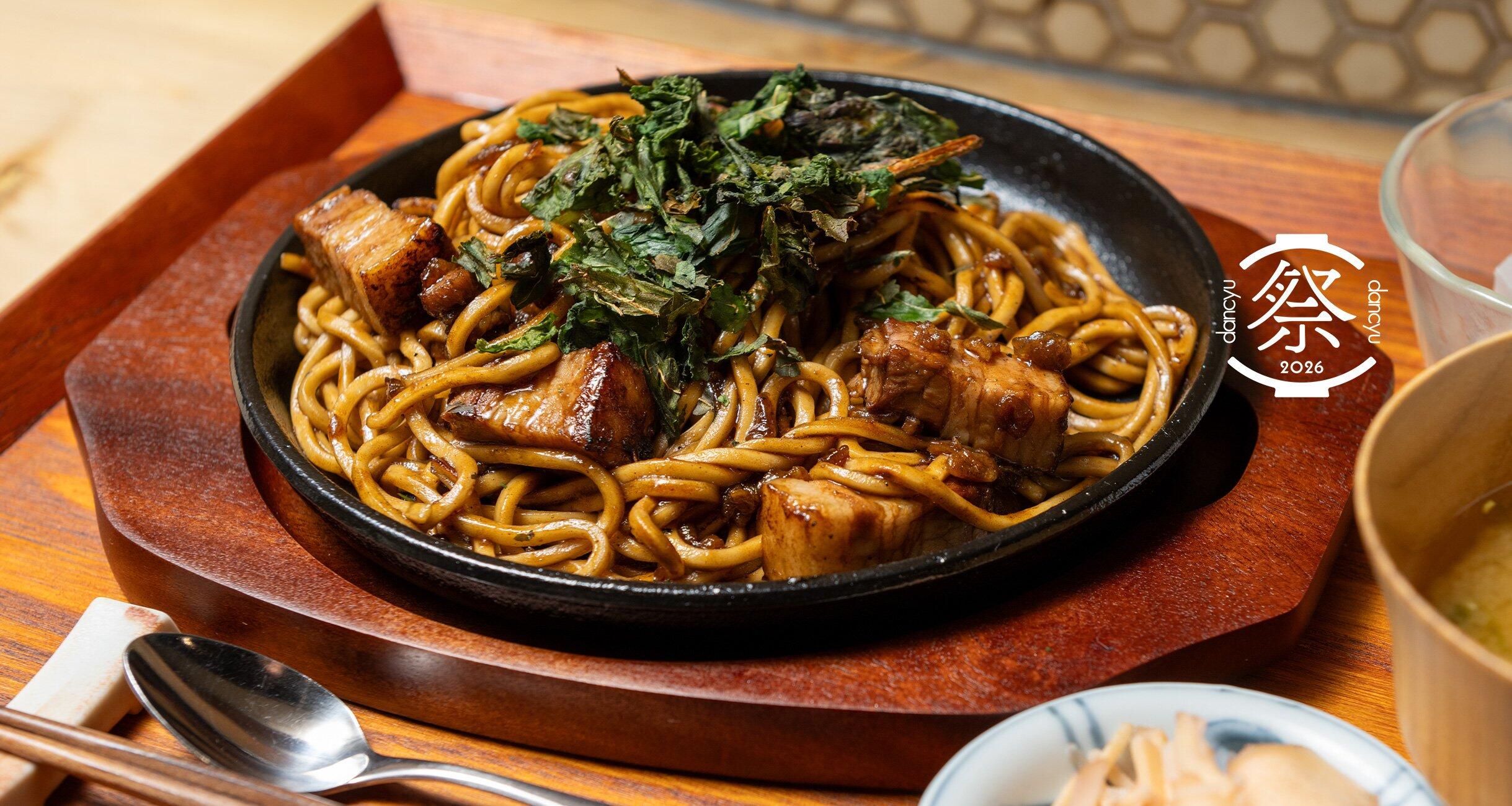 スタンダードの究極を目指し、「dancyu食堂」と編集部で開発を進めてきたオリジナル焼きそばがついに完成。祭でお披露目されることになりました。もちもちコシのある特注の中太角麺とゴロッと入る煮豚が濃厚なソースを纏って胃袋を奪取。焼きそば好きは必食です!