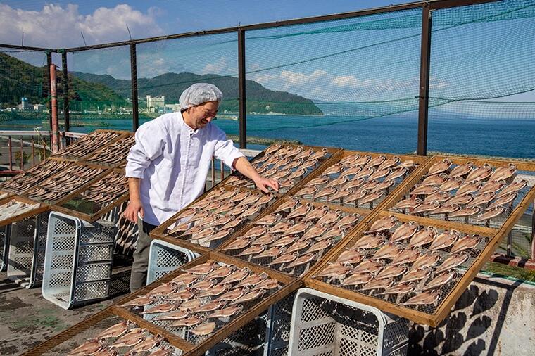 気温が低く少し風がある晴れの日は、絶好の干物日和。伊東の人気干物店「島源商店」の内田清隆さんにさばい...