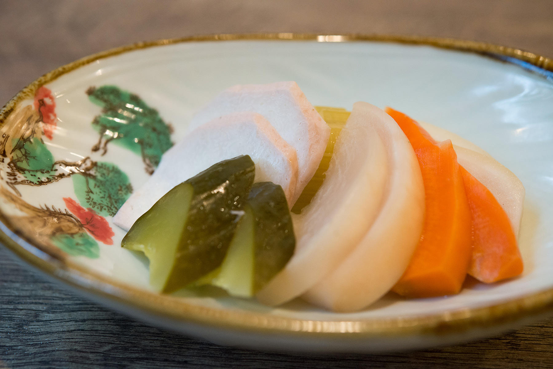 麻婆豆腐、塩熟成豚バラの山椒香り炒め、黒酢と辣油のサンラーメンに続いて紹介するのは、一見、なんの変哲もない漬物。