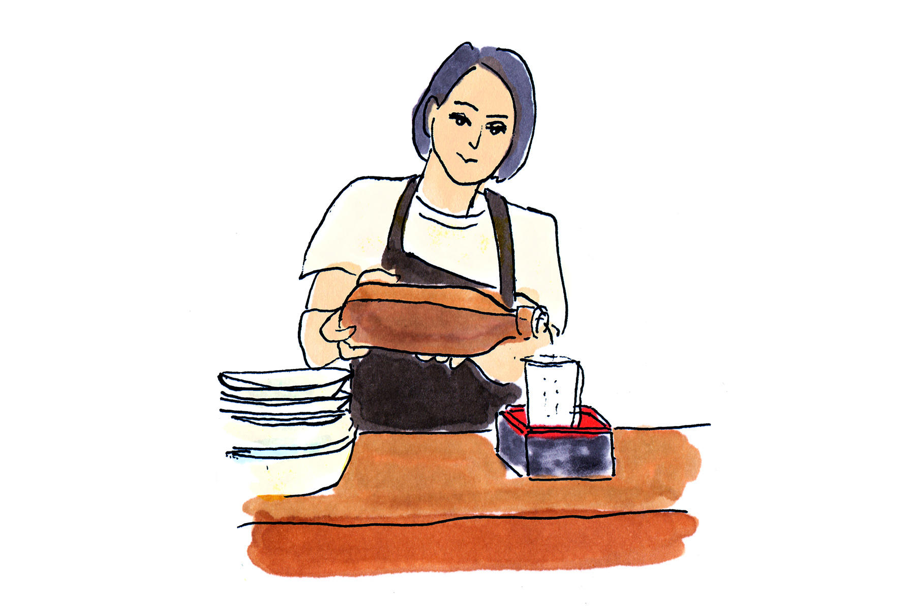 そして、一時も手を休めない。というのも、店には次々に常連さんが現れるからだ。