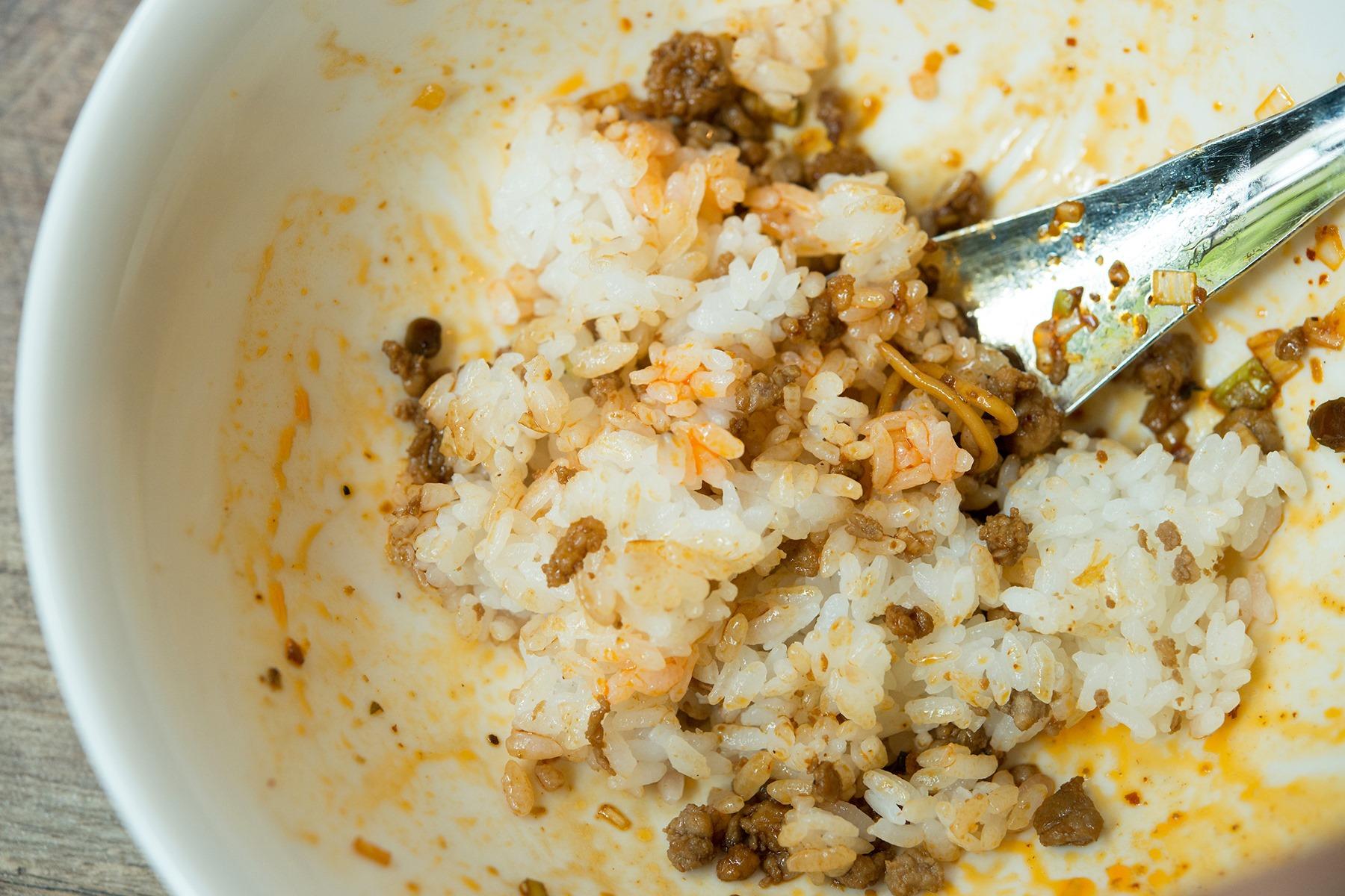 たれも肉そぼろもカシューナッツも、一体になるほどによく混ぜる。