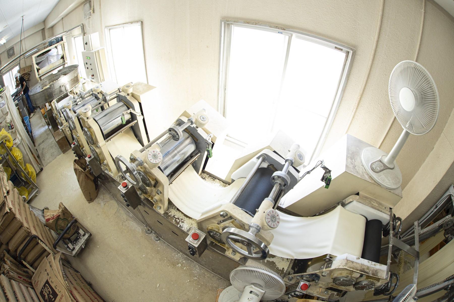 作業場ではうどん以外にも製麺機が並行して稼働していて、ラーメンや蕎麦などの麺もつくられている。どの機械にも様子を確認する清元さんの姿があり、錯覚かと思い目をこする。