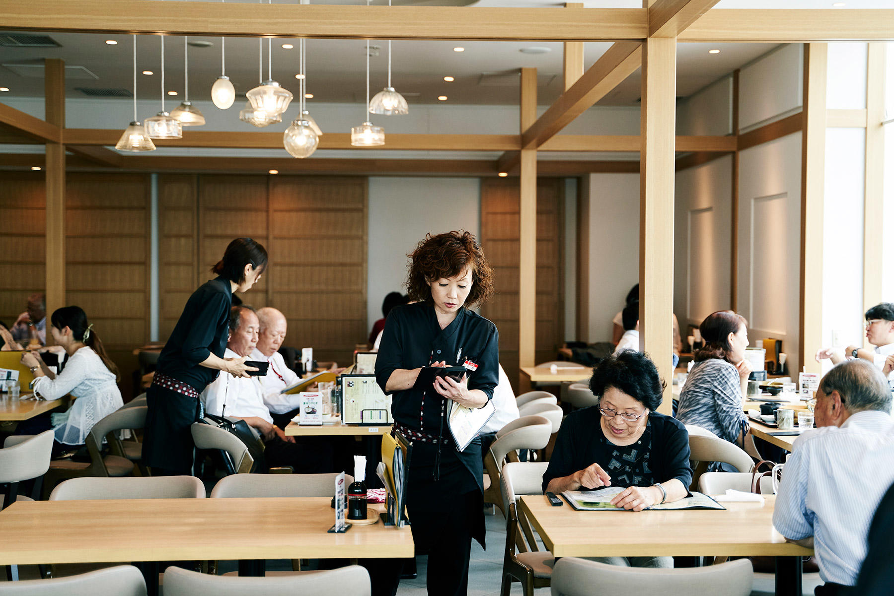 ご夫婦の、奥さんはステーキ、だんなさんはラーメン。ネクタイふたり組には、旅館の夕食のようなりっぱなご膳がととのった。若いカップルは、ナポリタンとカレーをわけあい、外国の五人家族は、天ぷら、刺身、お寿司、かつ丼、妻有そば。全員違うものを食べて、うんうんとうなずいている。