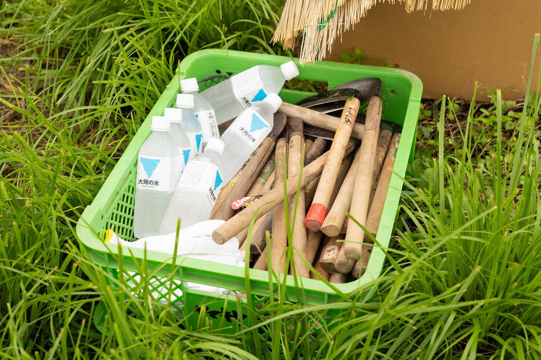 これは引き返すしかないか、と思案していたら、ほかのメンバーは鎌を選んだり、軍手を用意したり、ミネラルウォーターのボトルを並べたり、黙々と着々と準備を始めている。