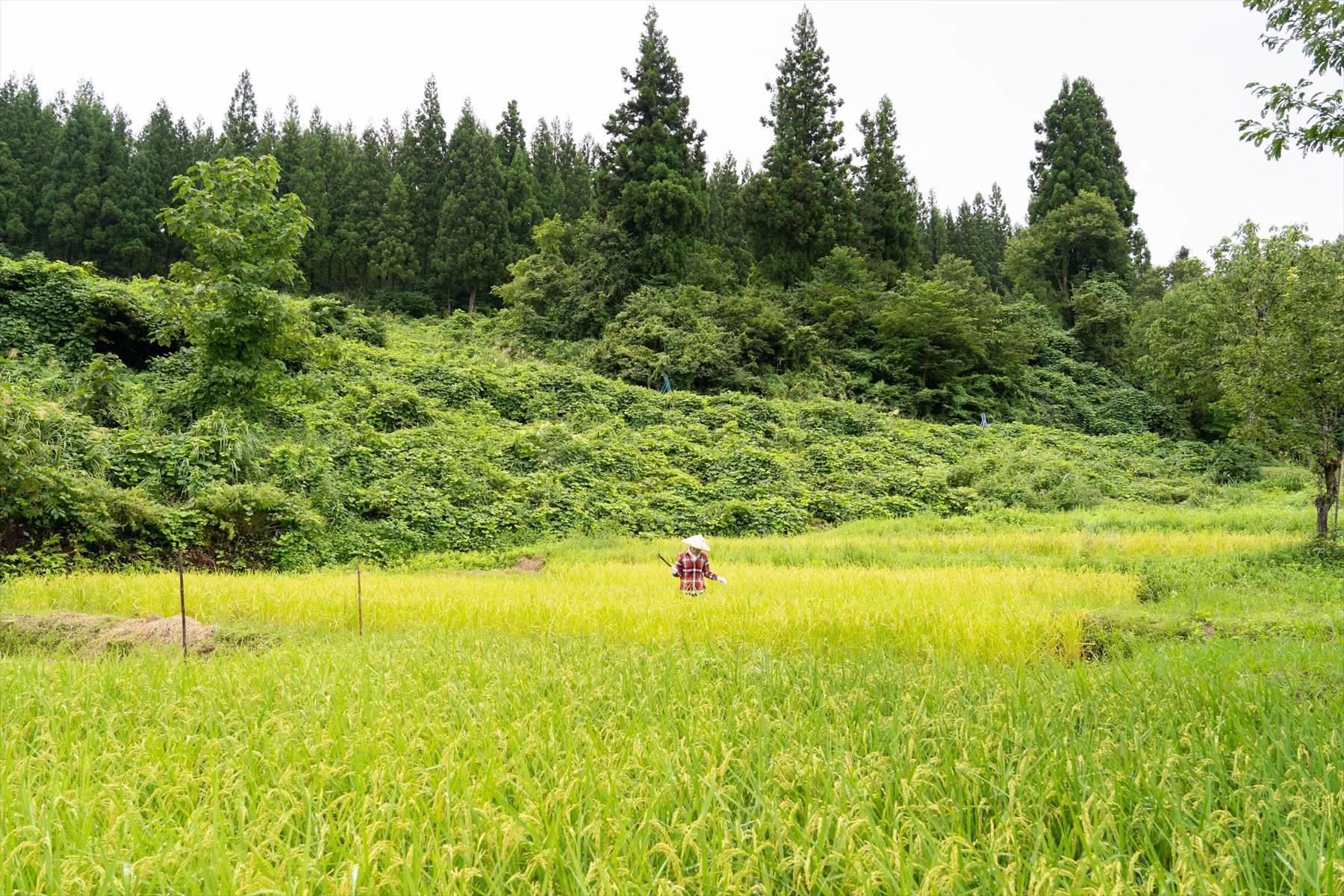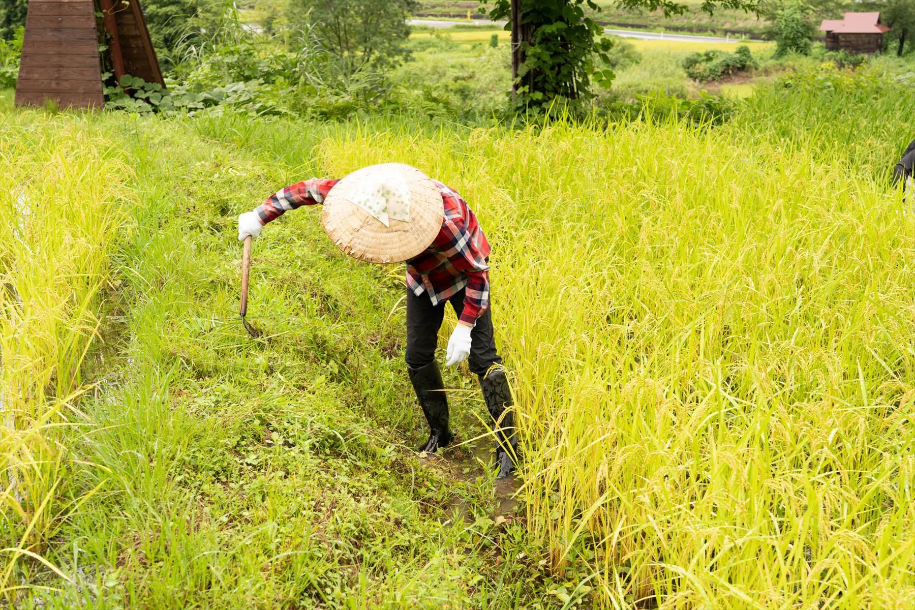 「倒伏(とうふく)はないから、草取りは難しくないですよ」とスタッフの竹中想さんは、人の気も知らずに、ニッと笑顔をみせた。