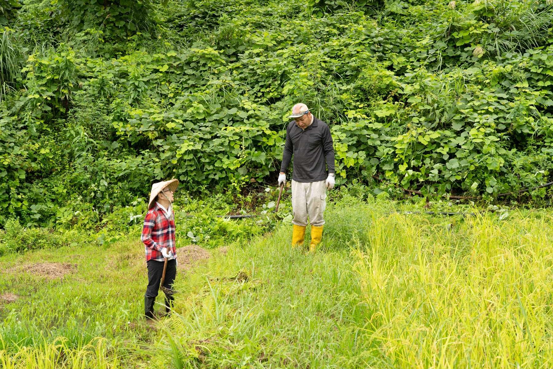 大人になってからというもの、果たして雨の中を傘もささずに外で過ごした経験はあっただろうか。記憶にございませんね。雨でもやるんですよね、草取りは。ひ弱な都会暮らしに慣れきっていると、雨中の農作業どころか、草むらにわけ入ったり、マムシと遭遇したり、なんてことはまずありませんからね。普段、口にしている米は、当たり前だけれど、自然が相手なんです。