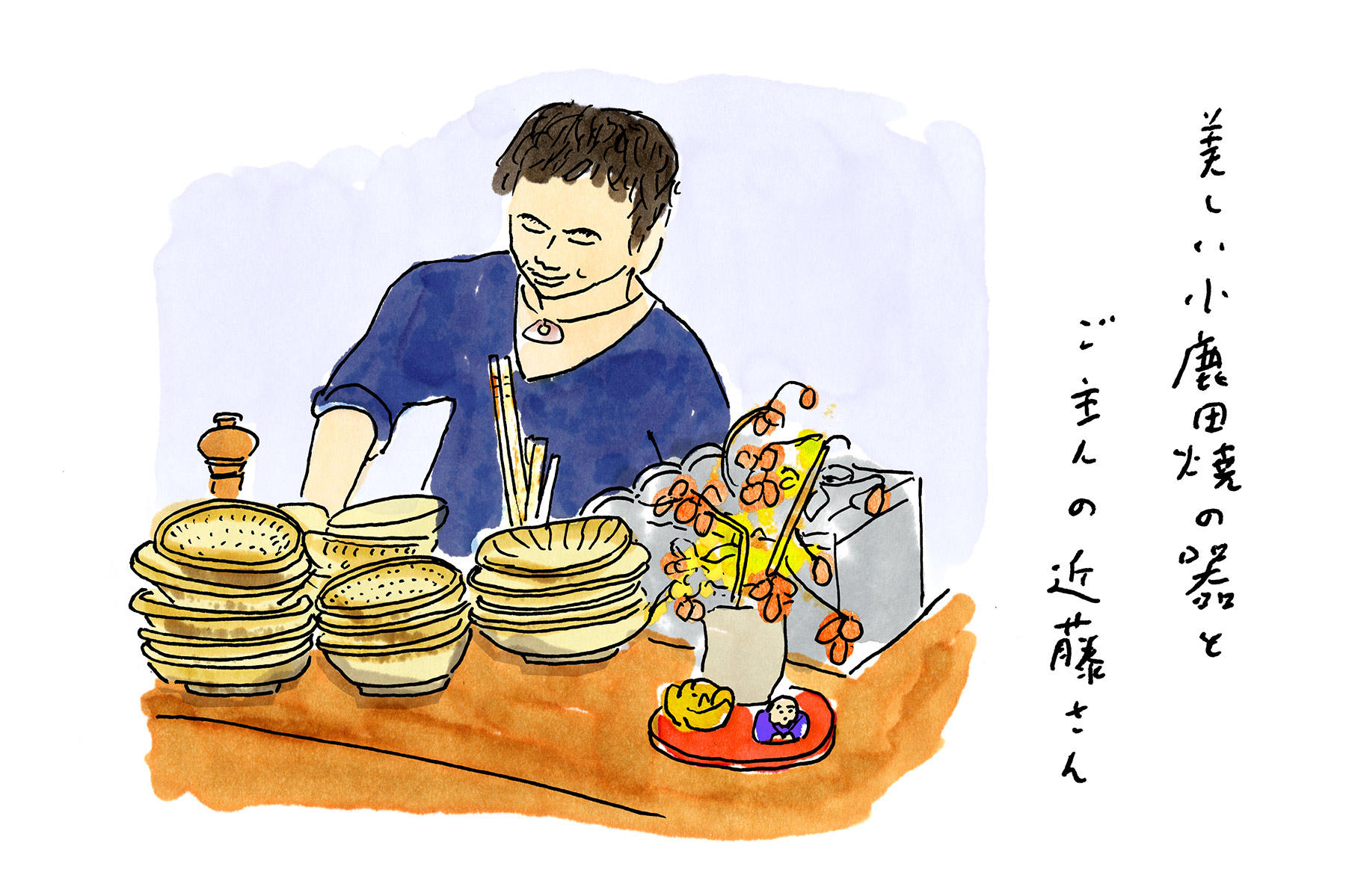 ご主人の近藤謙次さんがそう言いながら出した冷たいスープに口をつける。ほんのりと甘く、さらりとしていて、ホッとさせるうま味もある。豆乳とホワイトソースと小松菜のスープ。はあ、うまいなあ、と早くも感嘆のため息が出た。