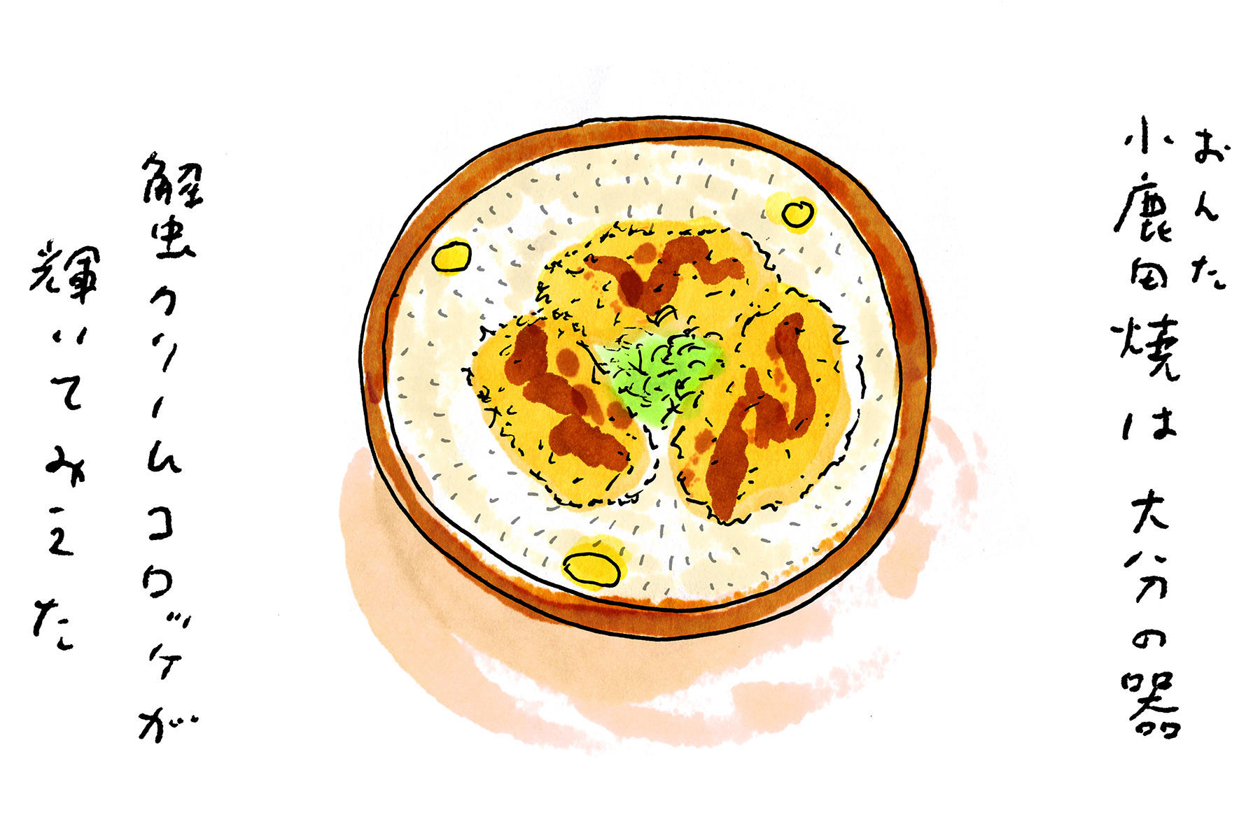 メバチ鮪赤身漬け 辛味大根添え、をいただく。マグロはサイコロ状に切ってある。薄切りの漬けではなく、肉厚のマグロの漬けである。味はよくしみて、食べ応えも申し分なく、添えてある辛味大根によって、口に入れたときの印象が爽快になる。切れ味のいい、マグロの漬け、といえばいいだろうか。大分は日田の小鹿田(おんた)焼きの皿に盛られたところも、ひとつの絵柄として美しい。