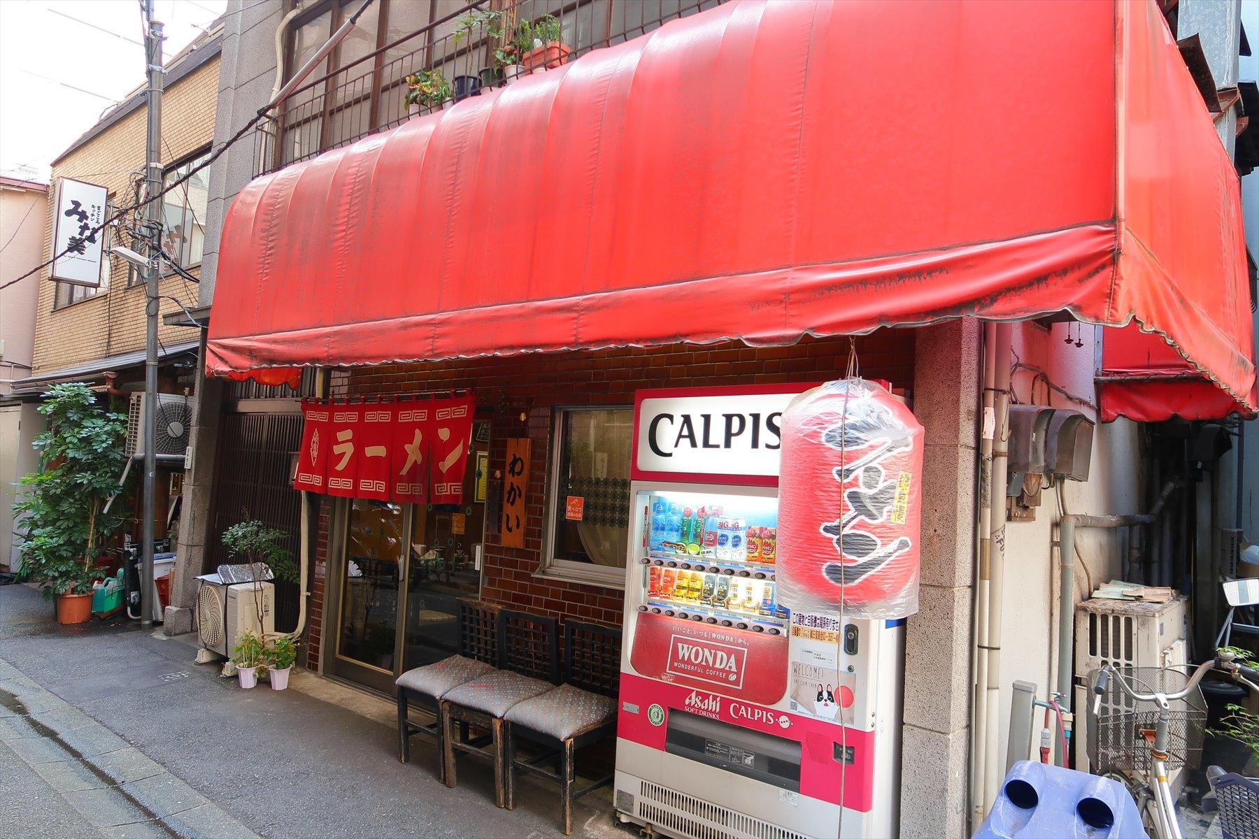 大きなテントの庇は無地で、店名もない。「わかい」と書かれた小さな板が入口にかかっているだけだ。