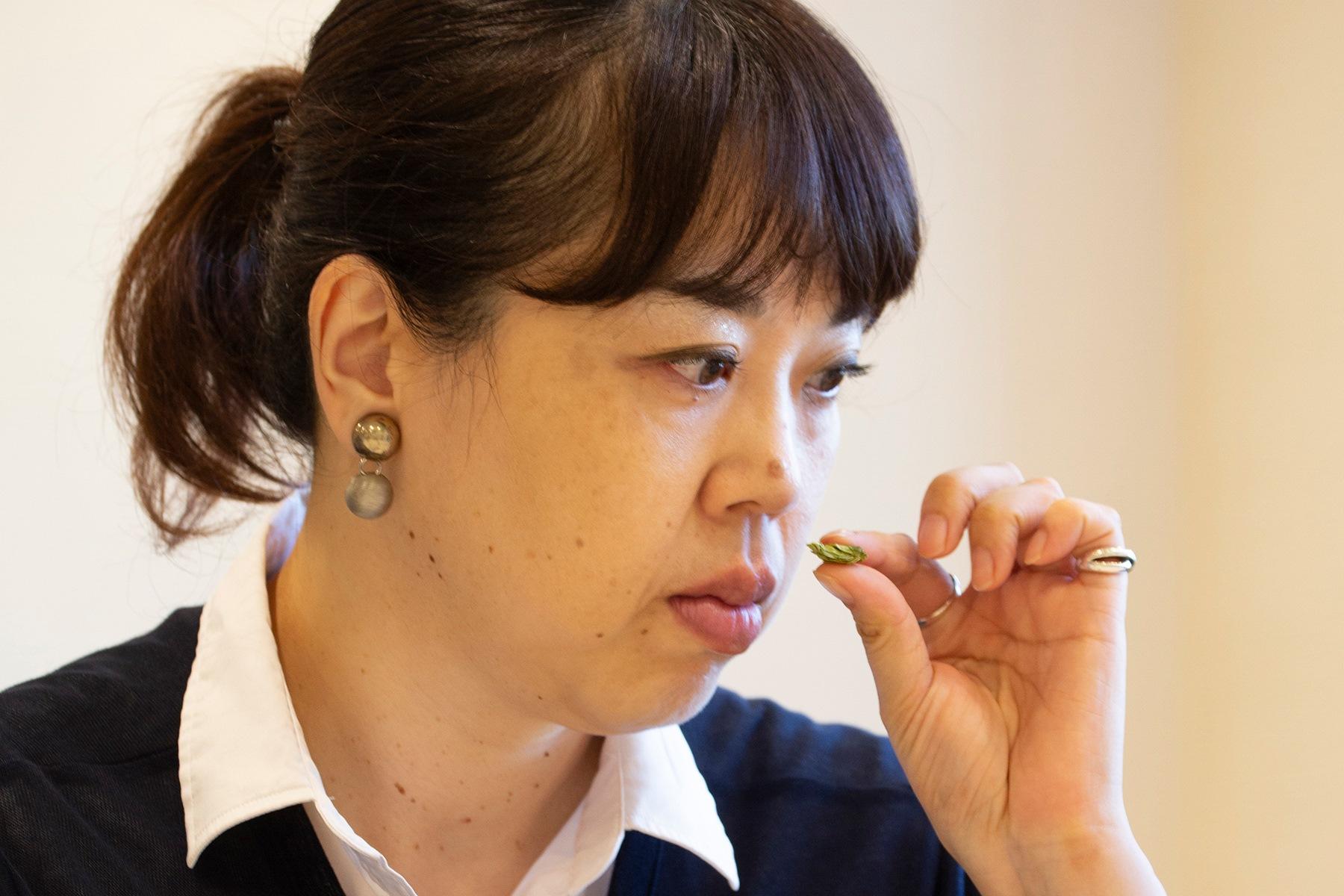 ドイツ産ヘルスブルッカーホップの香りをかぐ。「このホップは、キリンラガービールでも使われているそうですね。強烈な香りで、どこからあの心地いい香りに変わるのか……。想像できません」と田代さん。