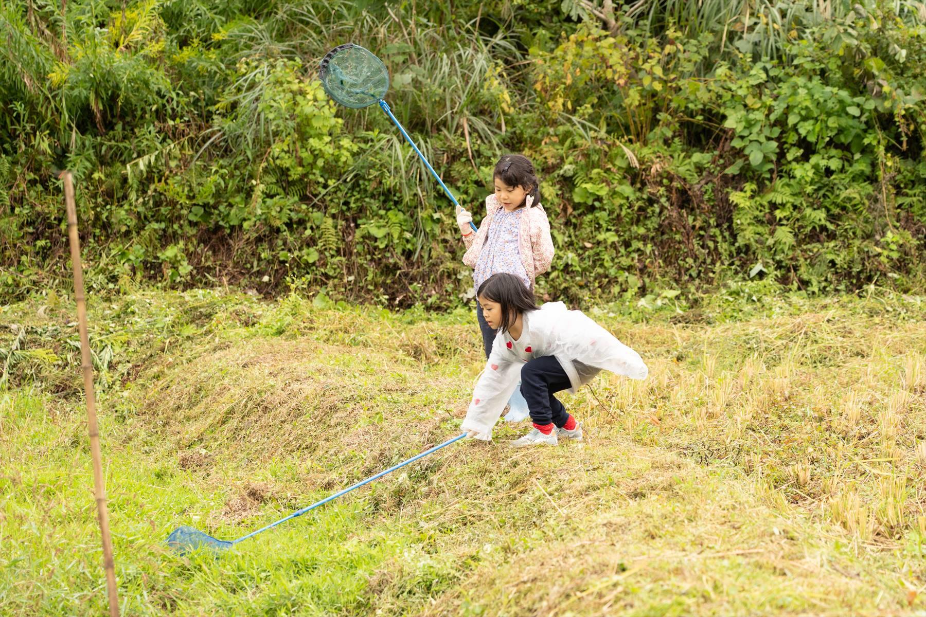 傍らに目をやると、子どもたちがカエルと戯れていた。かつてはどこの田んぼにもいたカエルやイモリといった両生類、ゲンゴロウ、タガメなどの水生昆虫は、どんどん姿を消している。そうこの棚田は無農薬なのだ。だからカエルが元気に生きていけるというわけ。かつては当たり前だった田んぼの姿が、ここには残っている。