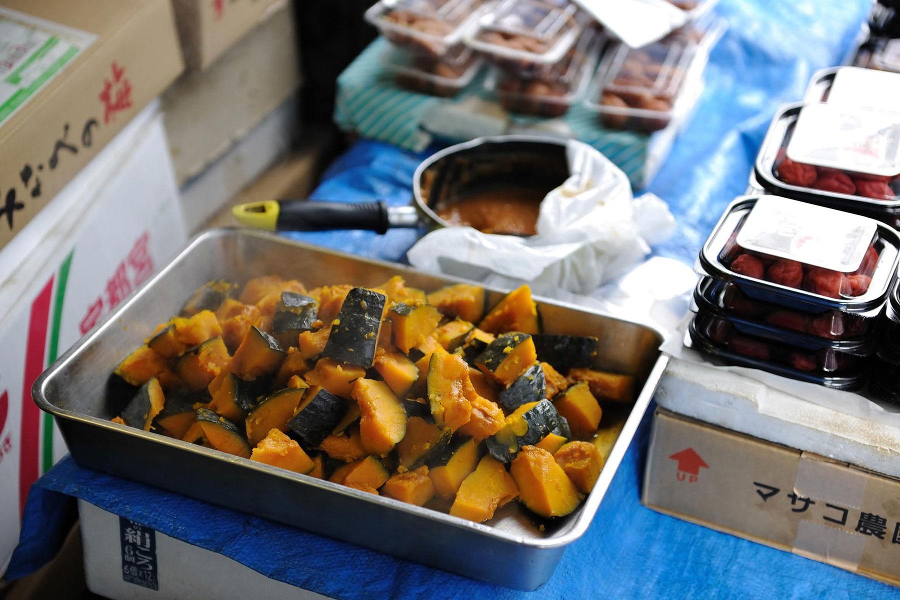 奥にある厨房に思わず目を瞠る。店の歴史を物語る真っ黒に燻し出された壁の前に昔ながらのかまどが二台、その横に長年の魚の脂で艶やかに黒く光るガスこんろが一台。元子さんはこれらをフル回転させて、毎日せっせと惣菜をつくり続けてきたのだ。庶民の家庭の食事を助け続けた説得力が厨房の裸電球に照らされてあぶり出されたようで、なんとも美しい勤労の姿を見た。