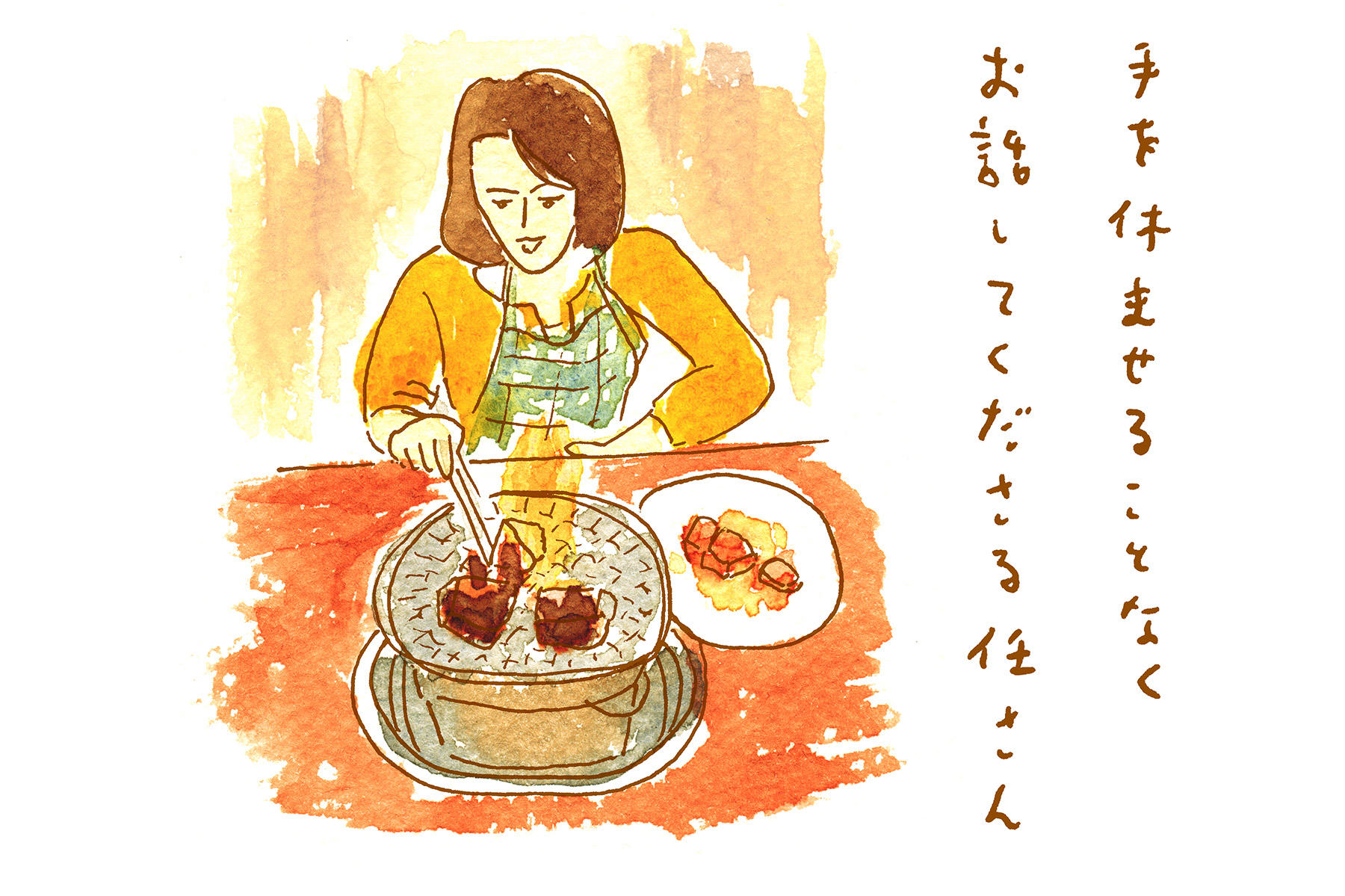 タレはもちろん、キムチもナムルも、コチュジャンも手づくり。我らの肉を網にのせてくれながら、若女将の任琴淑さんが教えてくださいました。