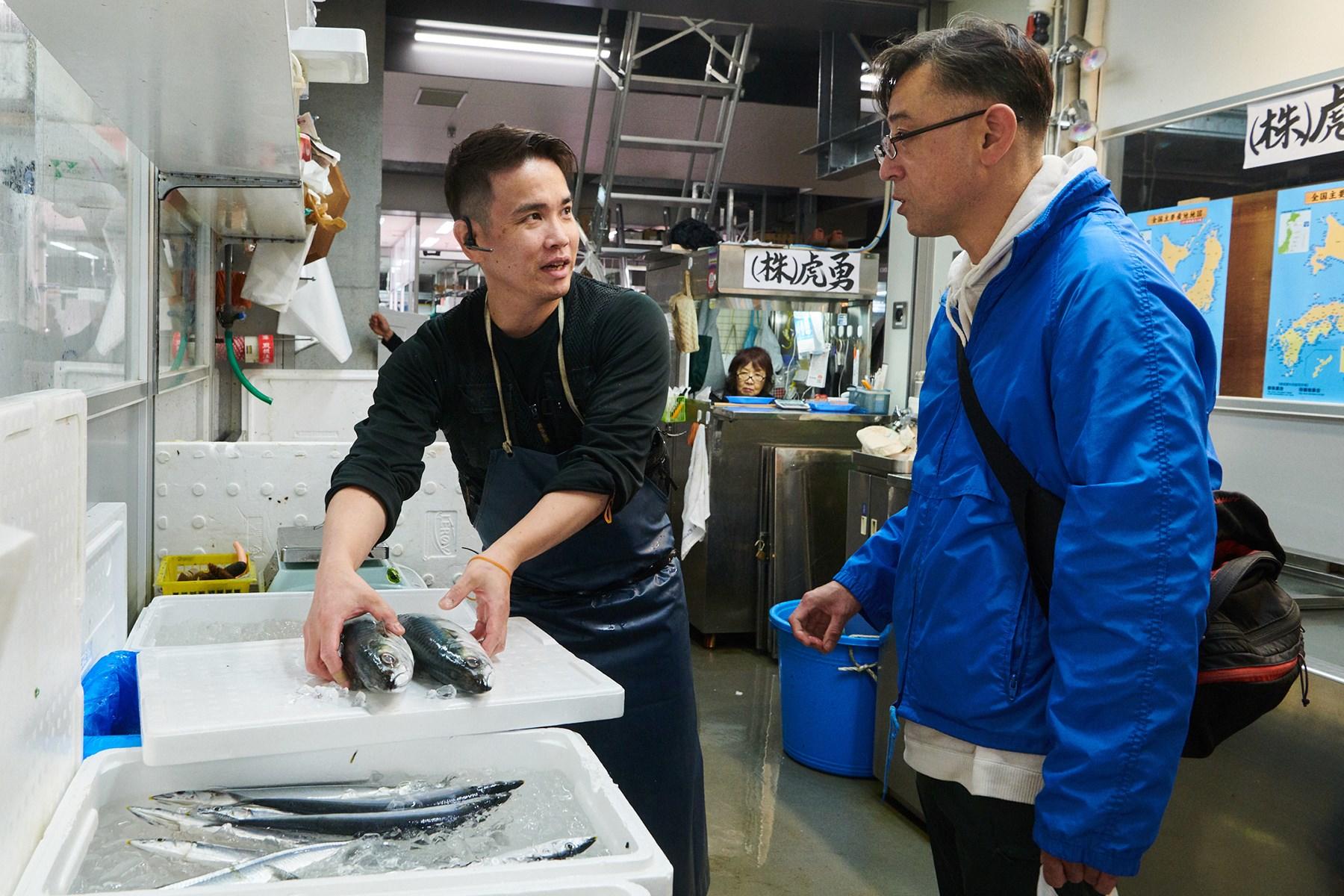 さばを仕入れるのは豊洲市場の「虎勇」という仲卸で、「㐂寿司」ではかつおの仕入れ先でもある。店主の中村文隆さんは、河岸が日本橋にあった頃からの「㐂寿司」の呼び名、「銀座さん」と一浩さんに呼びかけながらこう話す。