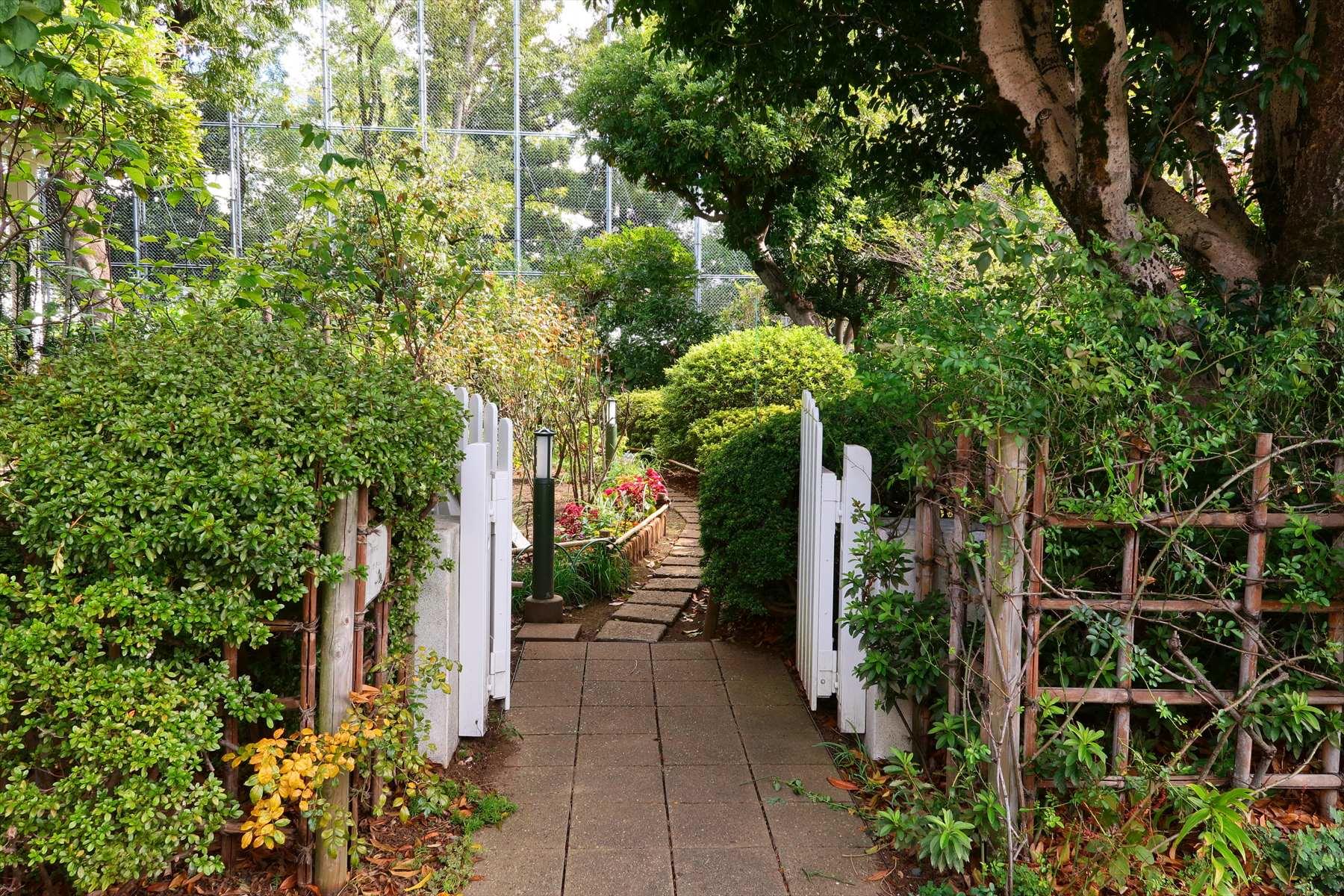 道路沿いの生垣に門があって、手招きするように内側に開き、敷石が中へと続いている。でも公園には見えない。家の庭みたいだ。入っていいのかな?と思いながら入ってみた。