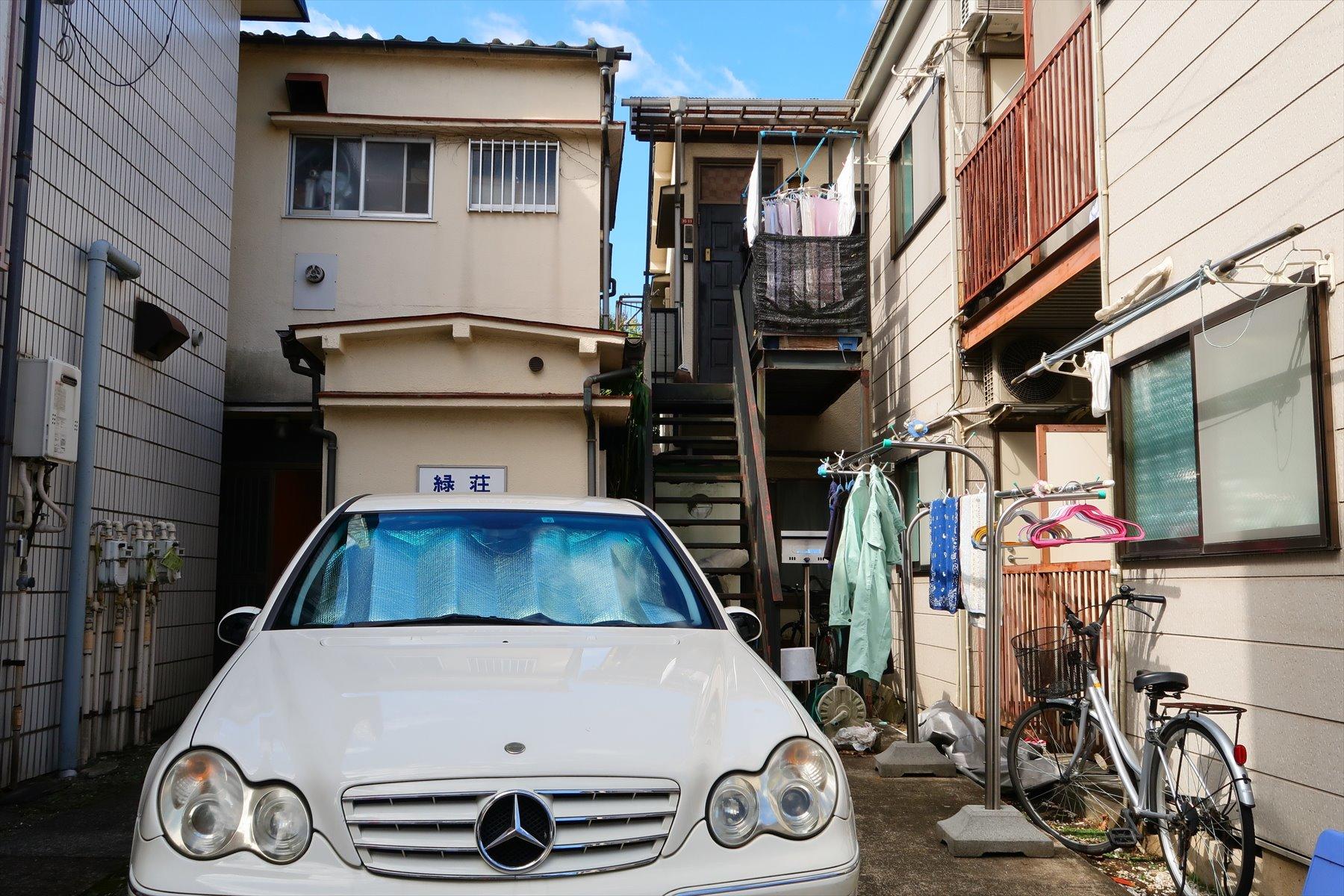 そこを離れ、あたりを見回しながらのんびりとこいでいく。「トトロの家」の周辺にも、昔ながらの集合住宅が数多くあった。