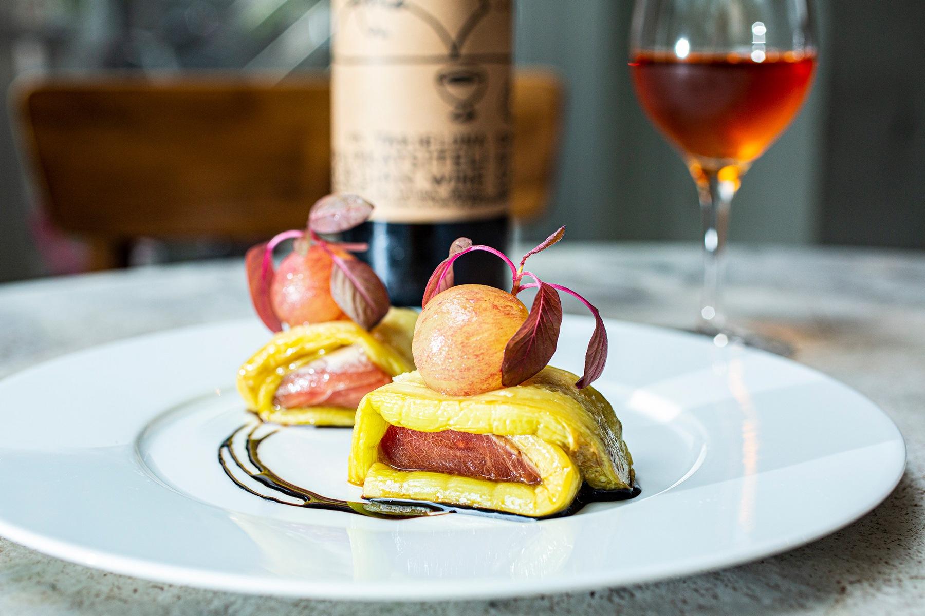 甘酸っぱいナス。ピオーネのジューシーな果実味。煮詰めたバルサミコの凝縮された旨味。ぶどう由来の奥深い味わいのオレンジワイン。