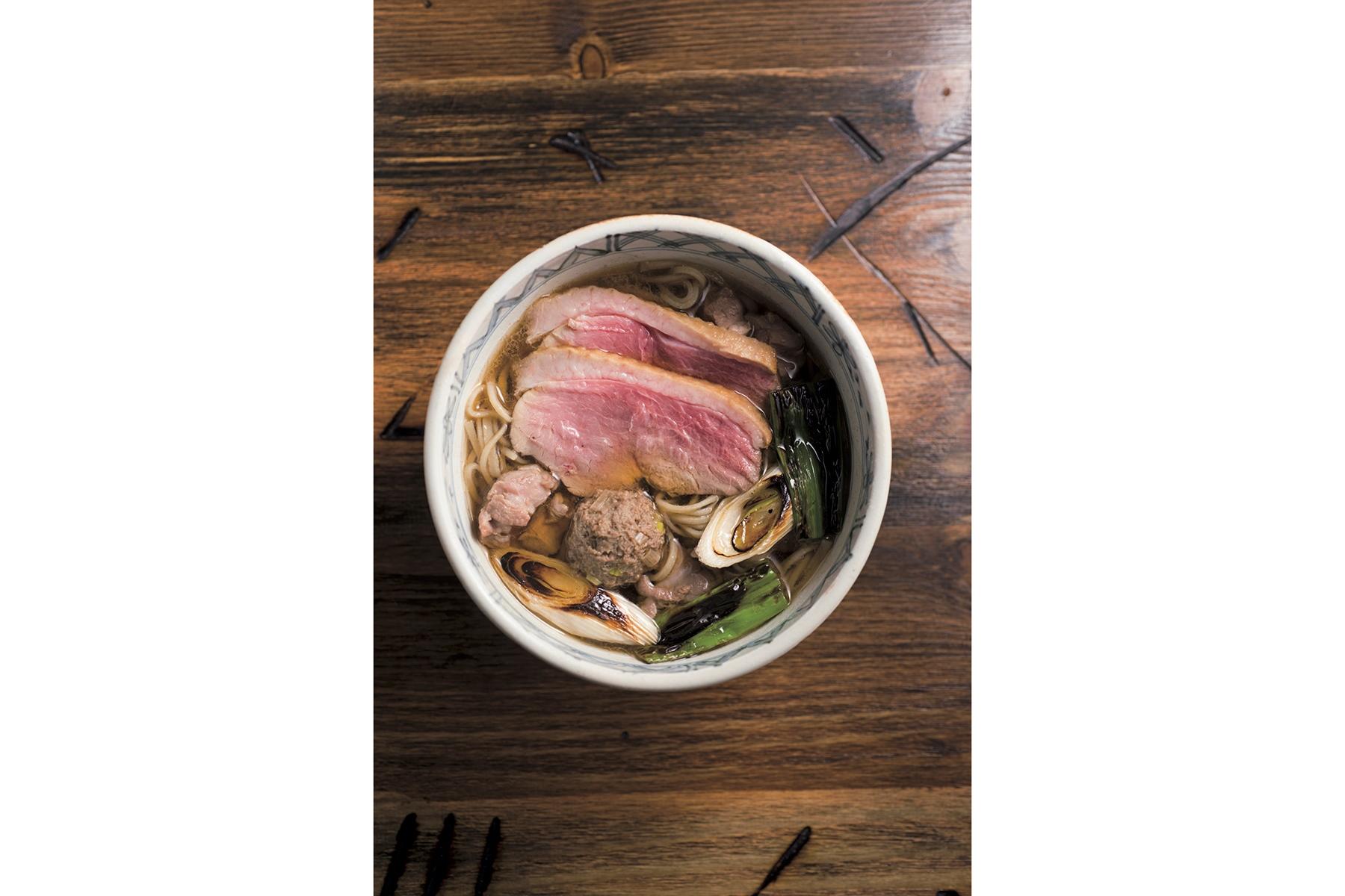 さて、別添えの鴨について店主の中溝伊織さんに問うてみると「鴨南蛮が大好きなのですが、鴨肉は熱い汁につかると硬くなるでしょ?だから添えたんです。そのまま食べてもいいし、汁でしゃぶしゃぶ風にしてもかまいません」。