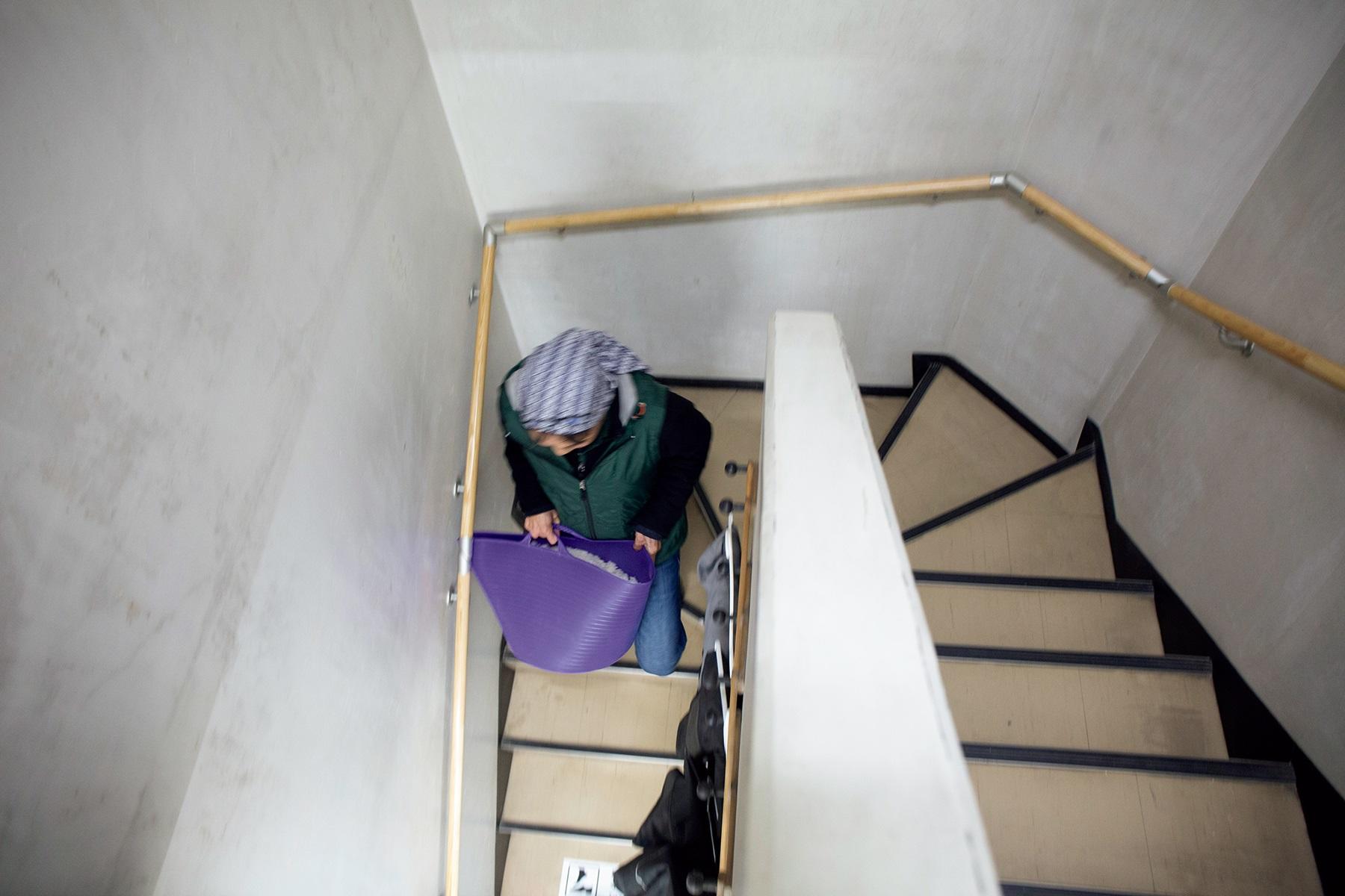 1月初旬、少し空が明るくなりかけた午前7時。最上階から米を蒸す湯気がもうもうと上がり、空に漂う。この時間にも通勤者がちらほら前の通りを歩いているが、上空を見上げる人はいない。
