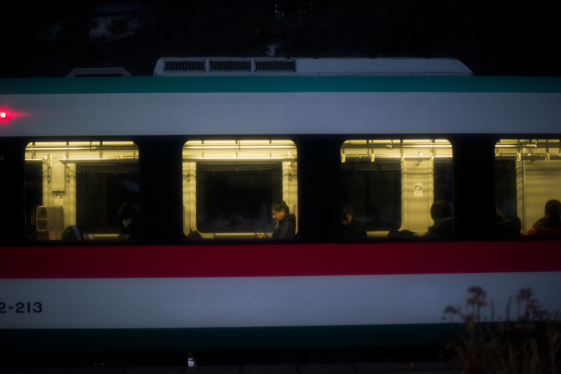 無力だった子どもの頃を思い出したりもする。列車はかすかに日の名残りが残る薄闇の中を走る。