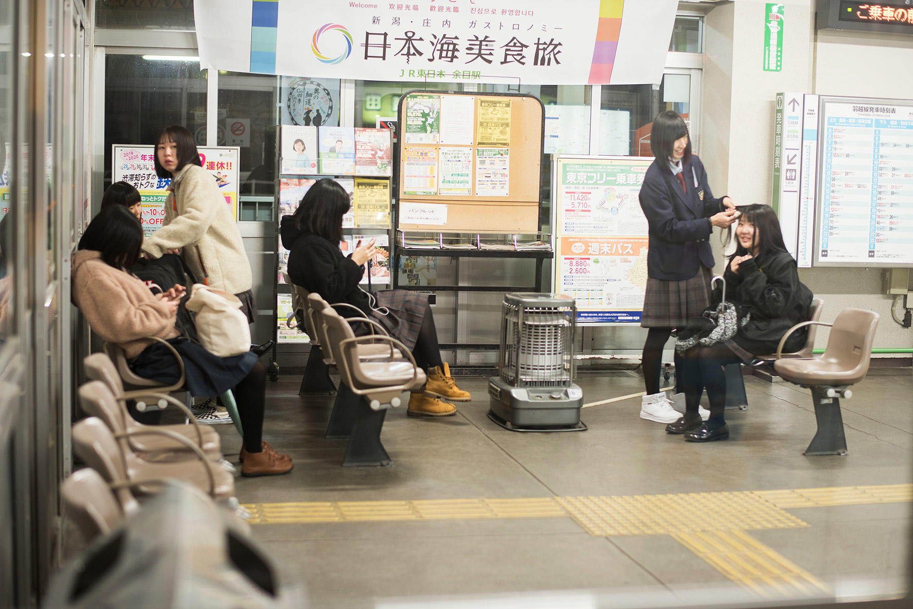 待合室では学生もそうでない人たちも静かに自分の乗るべき列車の時間を待っていた。我々も待つことにも随分慣れて来たと思う。