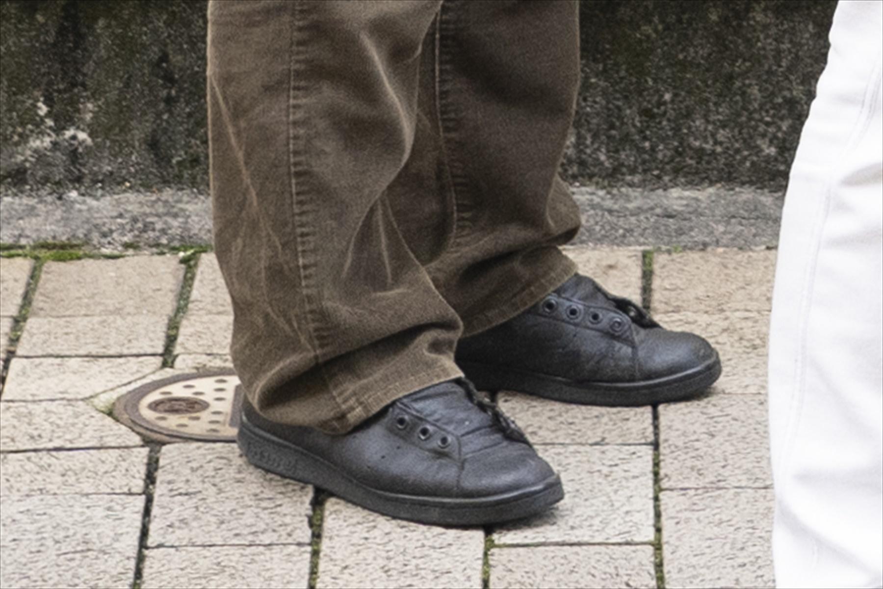 「足が腫れちゃって、紐を取らないと履けないんですよ。ほら」