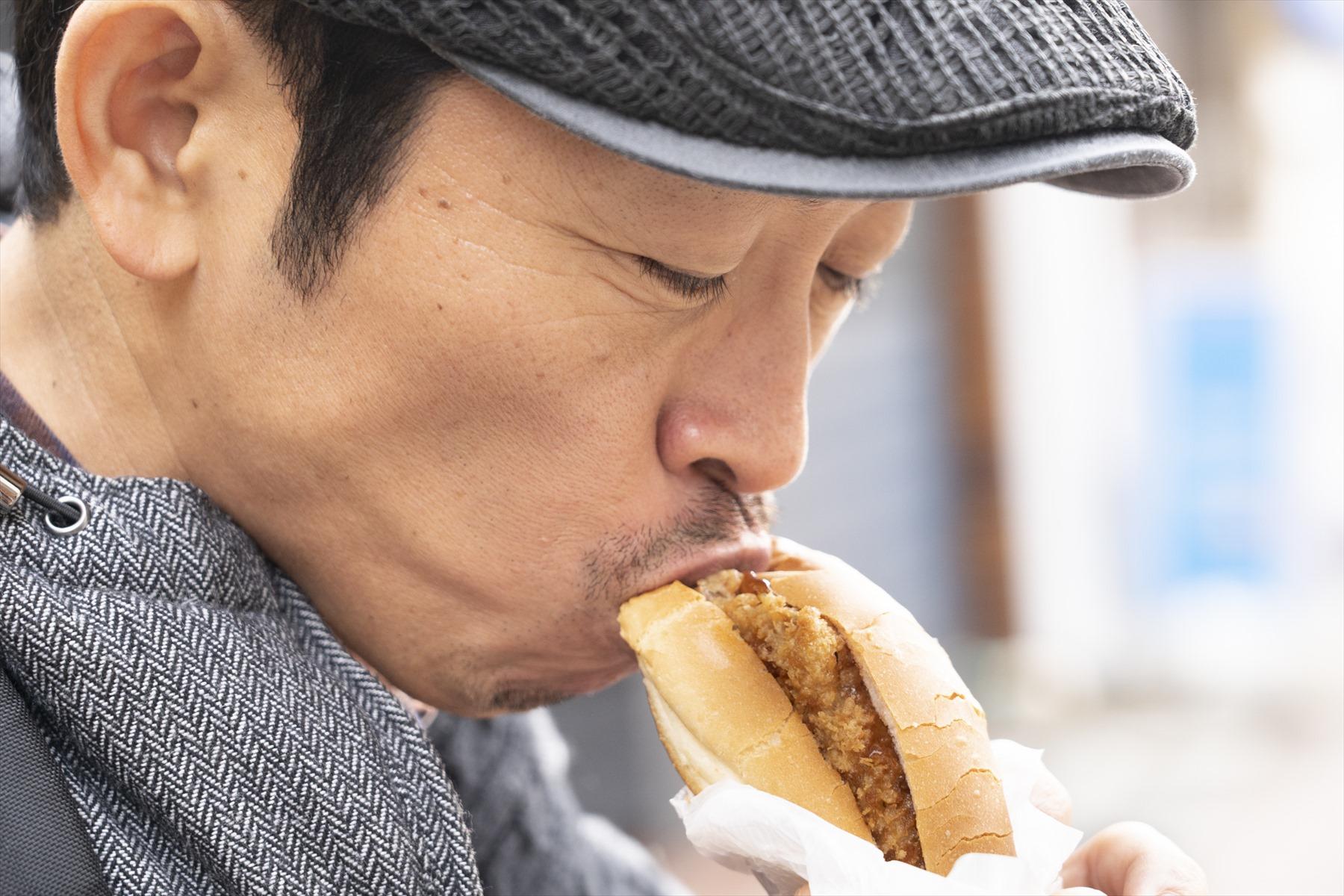 ひと口かじると、うわ、パンが想像と違う。店のたたずまいと値段から、てっきり昔の味のないコッペパンかと思っていた。でも表面はパリパリ、中はしっとり、小麦の風味が口いっぱいに広がって、その向こうからガリッと小気味よい衣、次いでエッ?とこれまた意外なほどに軟らかいお肉。と同時に、パンとカツの隙間からあふれ出る、とろっと甘い醤油だれ。……ああ、これは客が途切れないはずだよ。俺もまた必ず来るもん。てか、沼津の人が、ちょっとうらやましいな。この味を、食べてたんでしょ、子どものころから。で、帰ってくるんでしょ、またここに。ふるさとじゃん、この味。