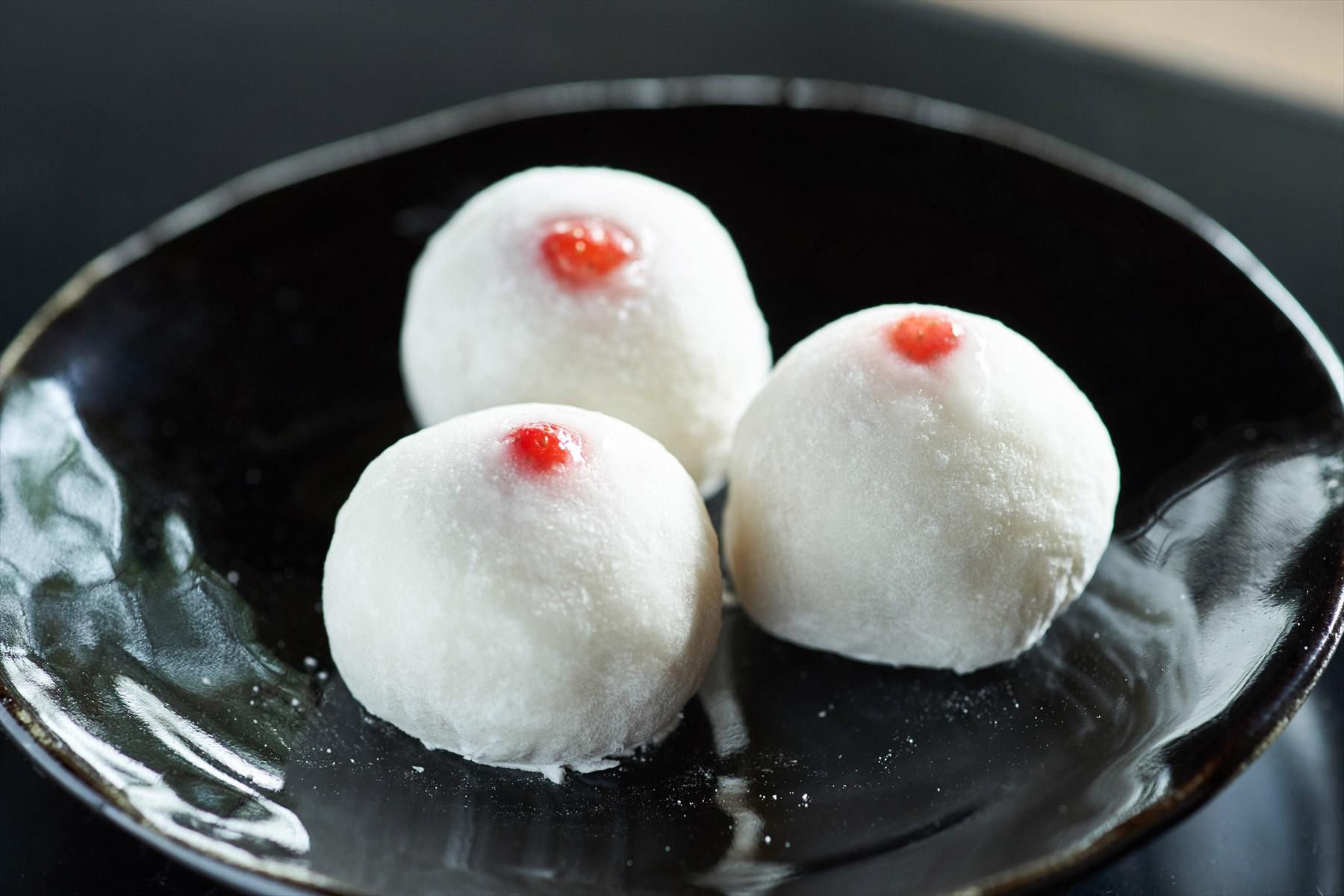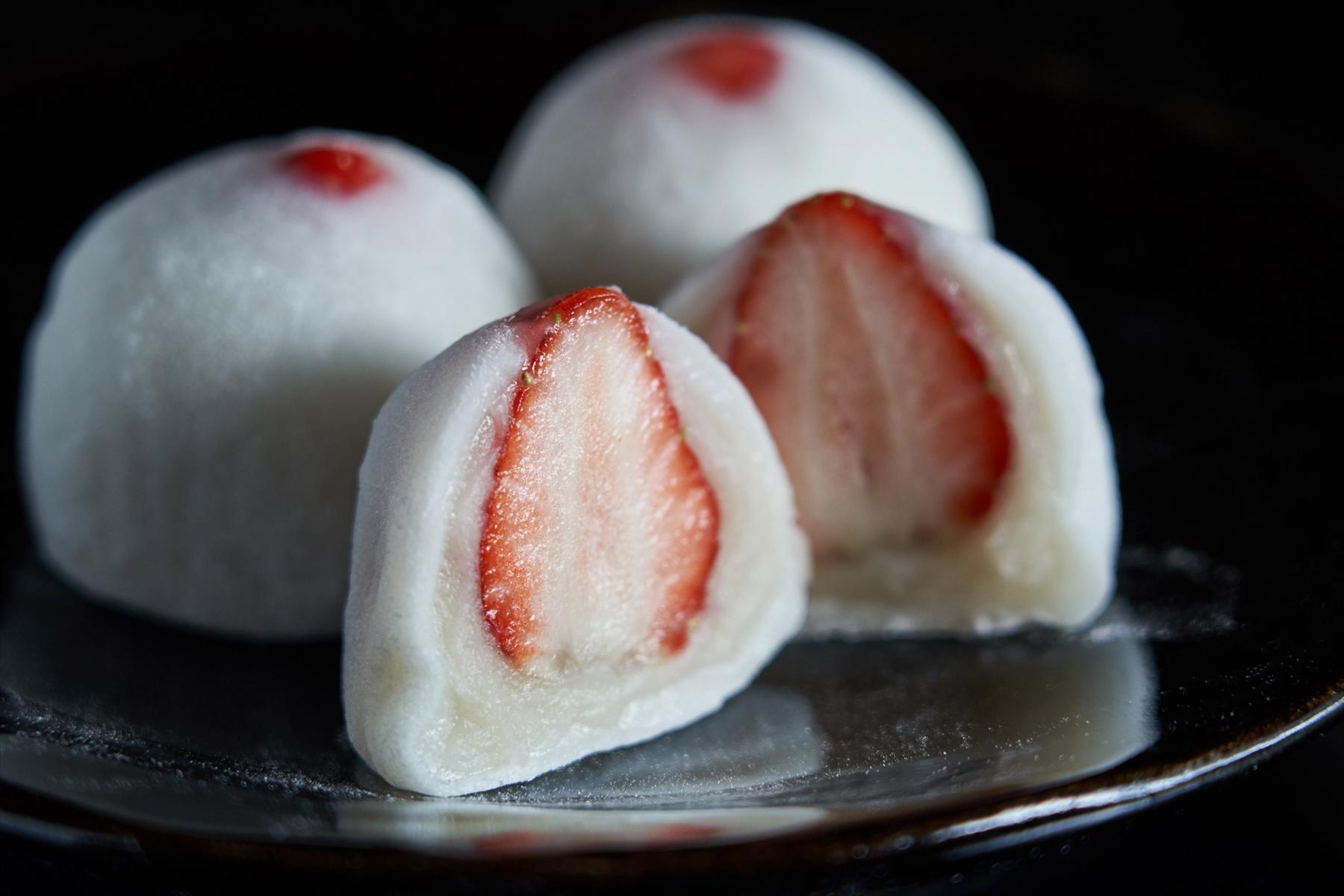 朝採れのイチゴを、あっさりした白あん、甘さ控えめの求肥でくるんだ大福は見るからに上品。かぶりつけばジューシーな果汁がほとばしって、想像以上に豊かな香りが広がる。さらさらした口溶けの白あんと薄い求肥がイチゴの甘酸っぱさを引き立てて、その余韻がいつまでも続くのだからたまらない。小ぶりなサイズ感も手伝って、思わず2つ3つと手が伸びてしまう、罪なおいしさだった。