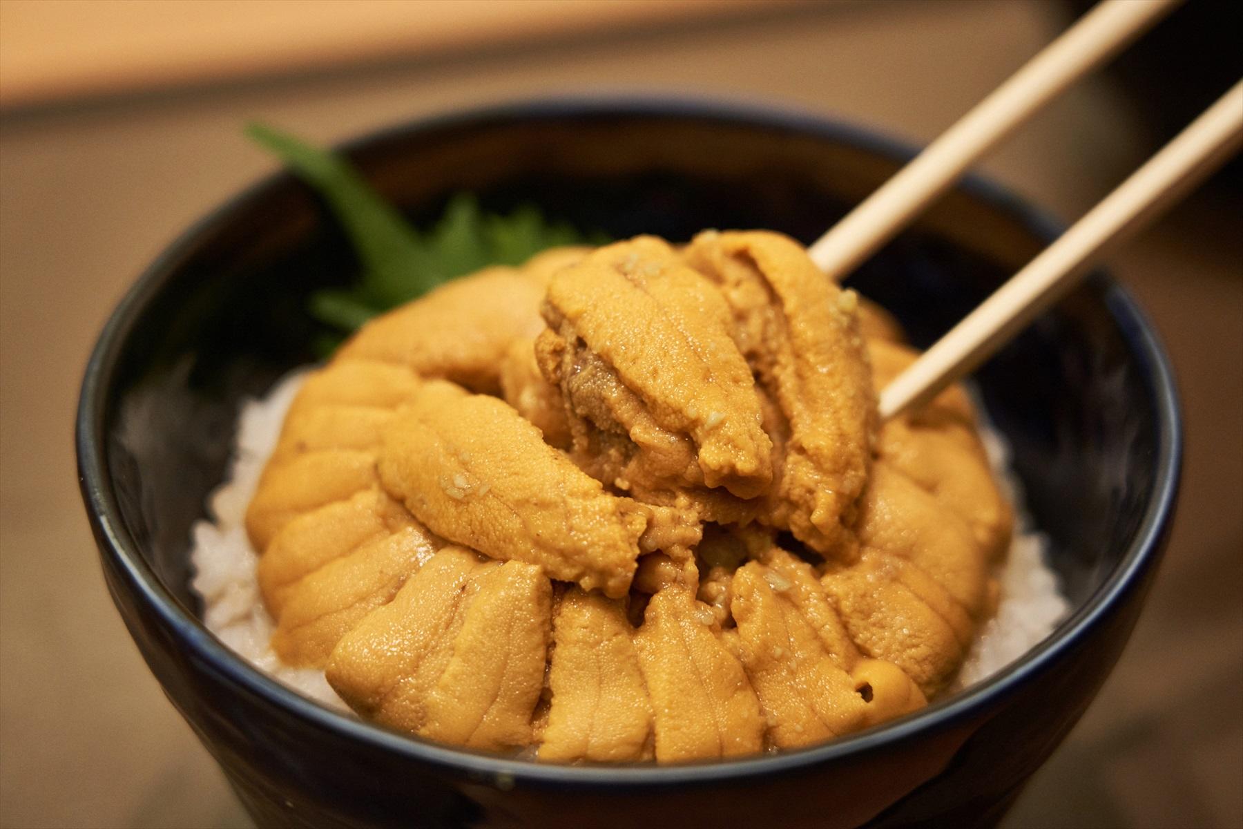 おいしさの秘訣は産地にもあった。つかうウニは北海道産が中心。女将曰く「ウニは食べるエサによって味が決まります。北海道の旨味豊かな昆布で育ったウニだからこそおいしいんですよ」。