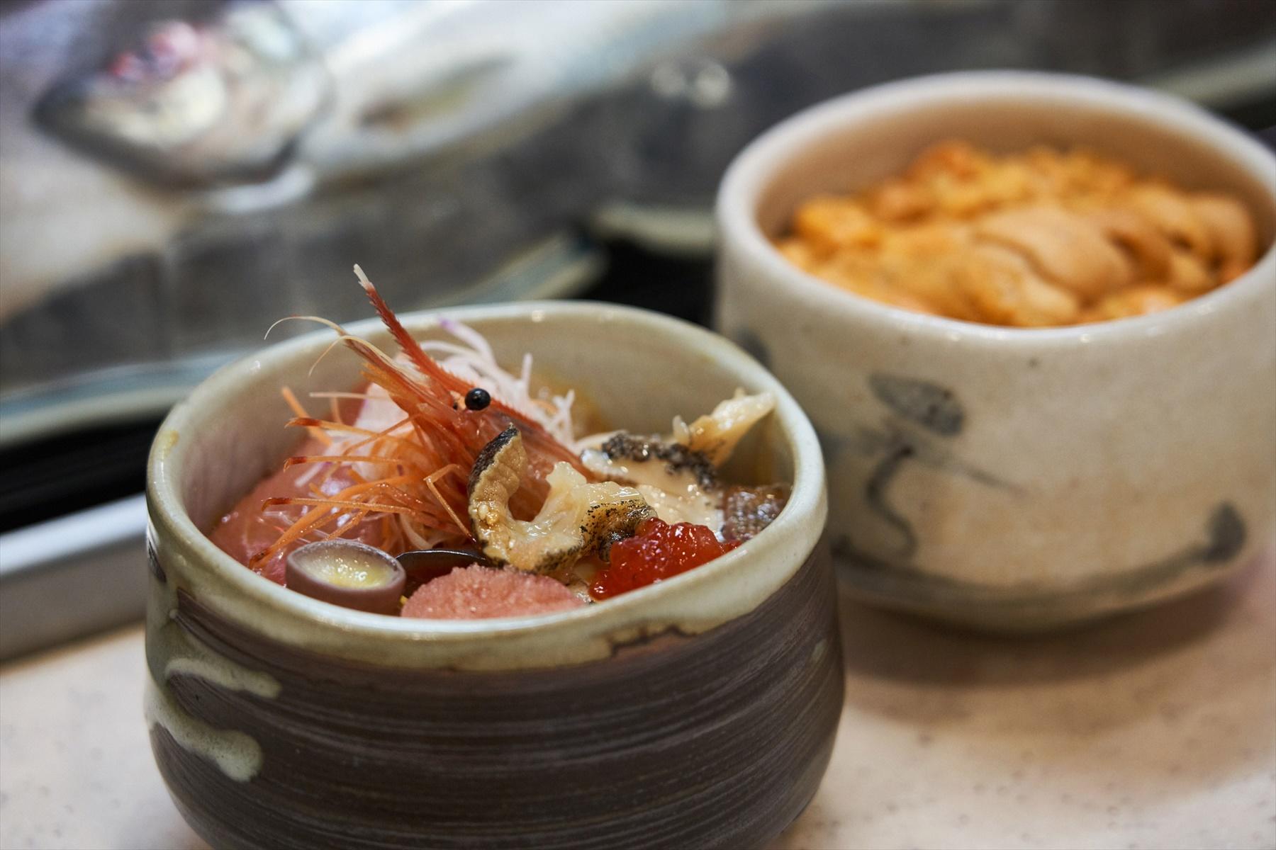 ウニ丼に加えて、何だかすごそうなDX海鮮丼を頼んでみると、丼のなかには、マグロ、メバル、ソイにヒラメにタコにアワビ。寿司のおまかせコースの種がひと揃え入っているかのような豪華さ!しかも、見るからにただの切り身をご飯にのせただけじゃない。聞けば、「魚種によって、寝かせて食べ頃まで熟成したり、皮目を霜降りにしたりしています」というから、仕事は寿司屋並み。さらに、卵黄を合わせた黄身醤油にくぐらせてご飯にのせるというから芸が細かい。どの種も持ち味が生きて、卵黄効果でまろやか。その味は、はるかに値段以上。こんなに味わい深い海鮮丼にはめったに出合えないだろう。