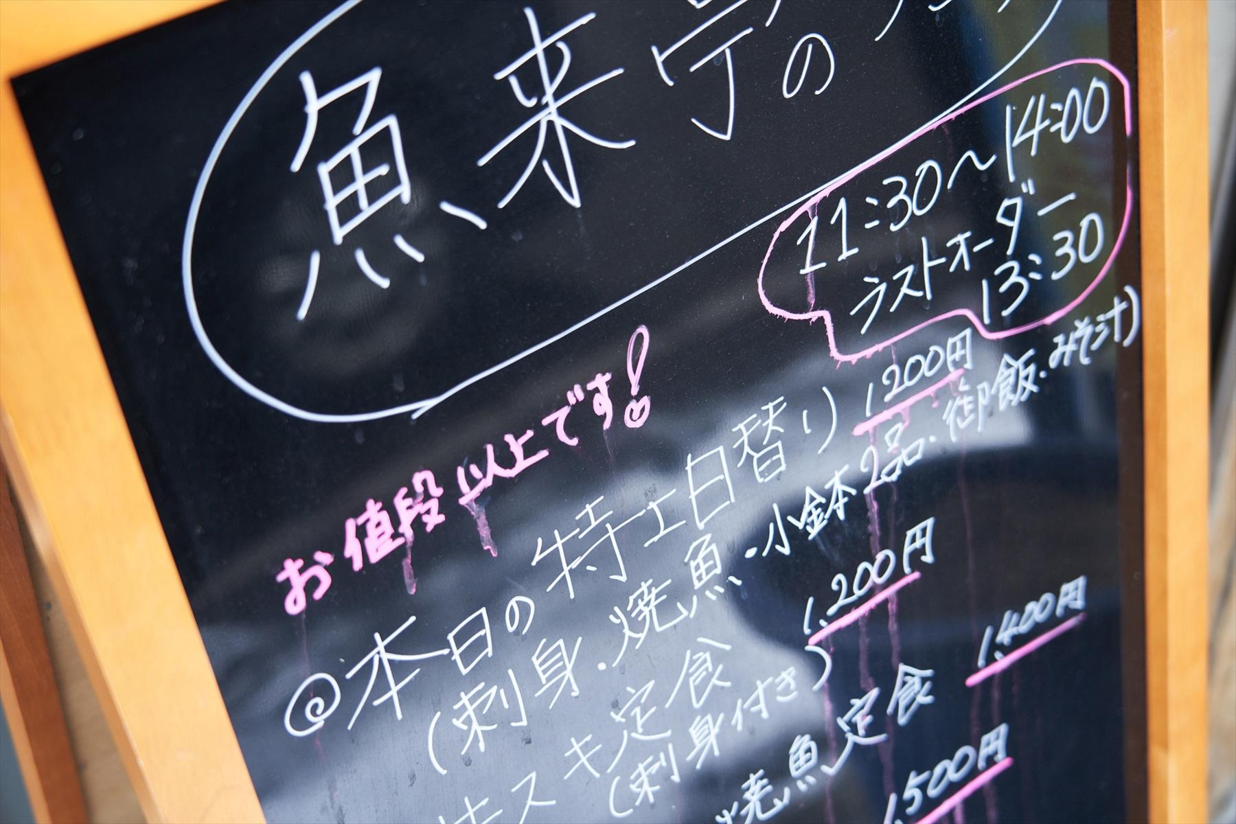 市電に乗って「五稜郭公園前」で下車。戊申戦争最後の戦いの舞台となった五稜郭で激動の時代に想いを馳せながら界隈を巡っていると、気になるランチの看板を見つけた。「お値段以上です」と書いてある。興味をそそられて「郷土風味 魚来亭」の文字がゆれる暖簾をくぐった。