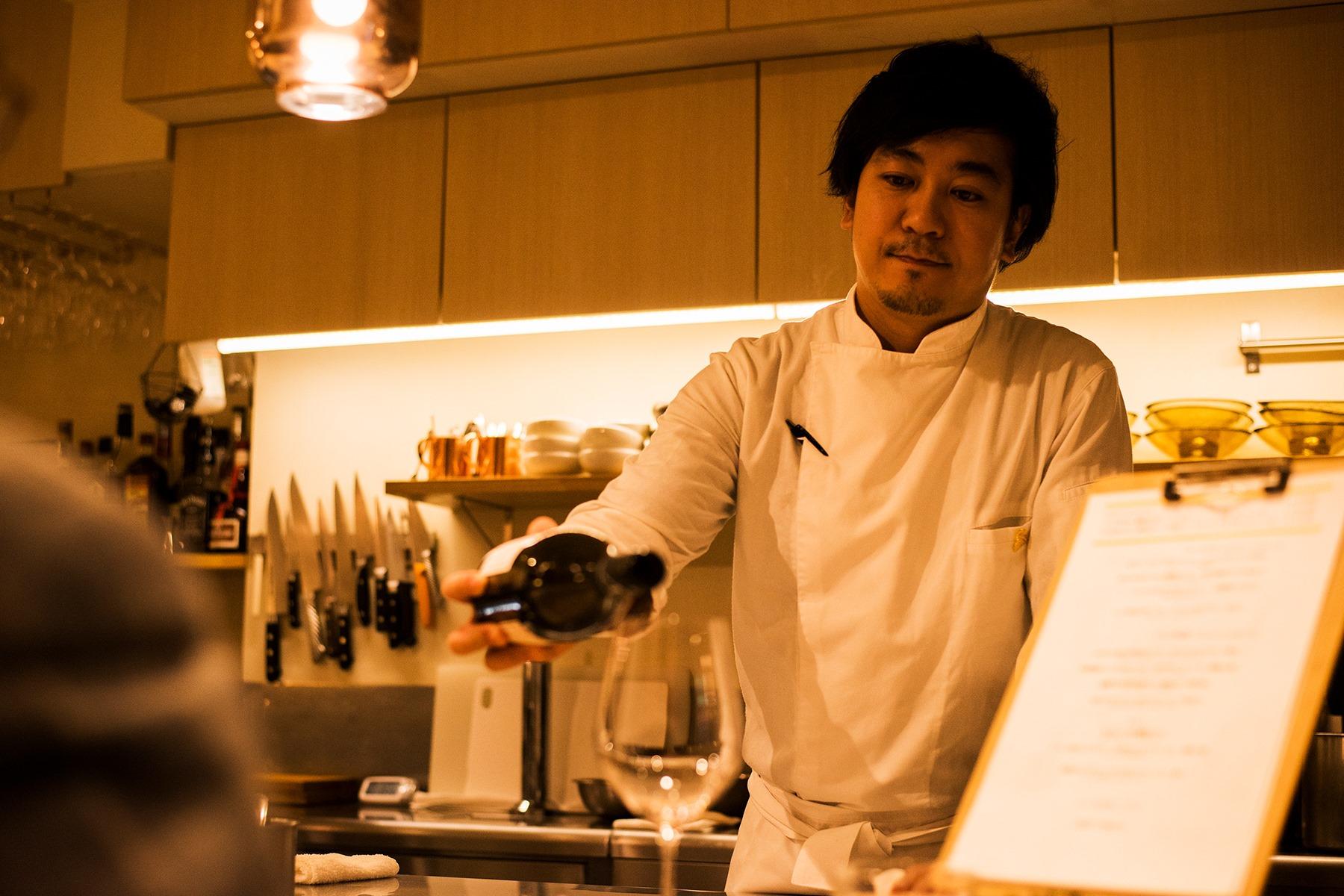 シェフは、「伝統料理を大切にするが、そこに縛られないことが必要だ」とも言う。目指しているのは「カジュアルなガストロノミー(美食)」。気取らないで楽しめるちょっとした贅沢だ。カウンター7席、テーブル8席。カウンターではお鮨屋さんのような感覚で、アラカルトも楽しんでいただきたいそうだ。