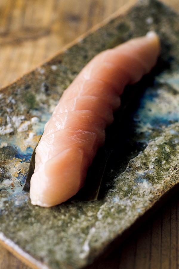 悩殺されたのは、朝絞めの鶏を使ったささみの昆布〆。ねっとりまろやかで官能的だ。どんな酒が合うだろう?と悩む間もなく、店主、梅澤豪さんのアシストが入る。