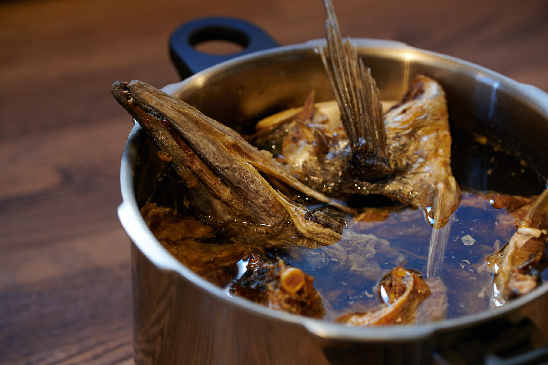 その後、全国の日本料理店で魚介料理や鮨を学ぶ。魚の下処理やさばき方は誰にも負けない。その傍ら古代ハムの製法にも興味を抱き、「La毛利」(練馬)で南欧料理を学ぶ。海洋国家であるポルトガルは、日本と同じく魚介類・魚介料理が豊富だ。古川シェフが日本では知名度の低いポルトガル料理へと進んできたのには必然性があるのだ。