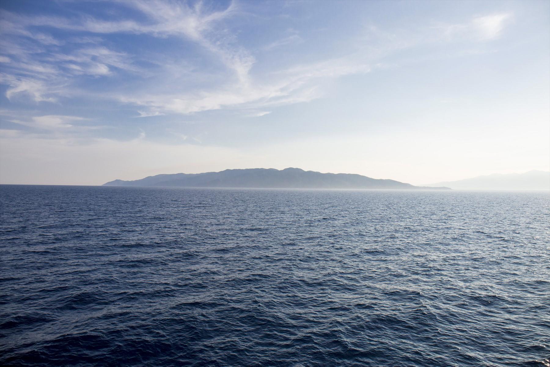 大きな影が見えてずいぶん経つのに、その島は、近づきそうでなかなか近づかない。前日に到着したチームは、もう仕込室に入っただろうか?しかしフェリーは歩くようにゆっくりと進み、そわそわしつつも、そのスピード感はなんだか優しい。