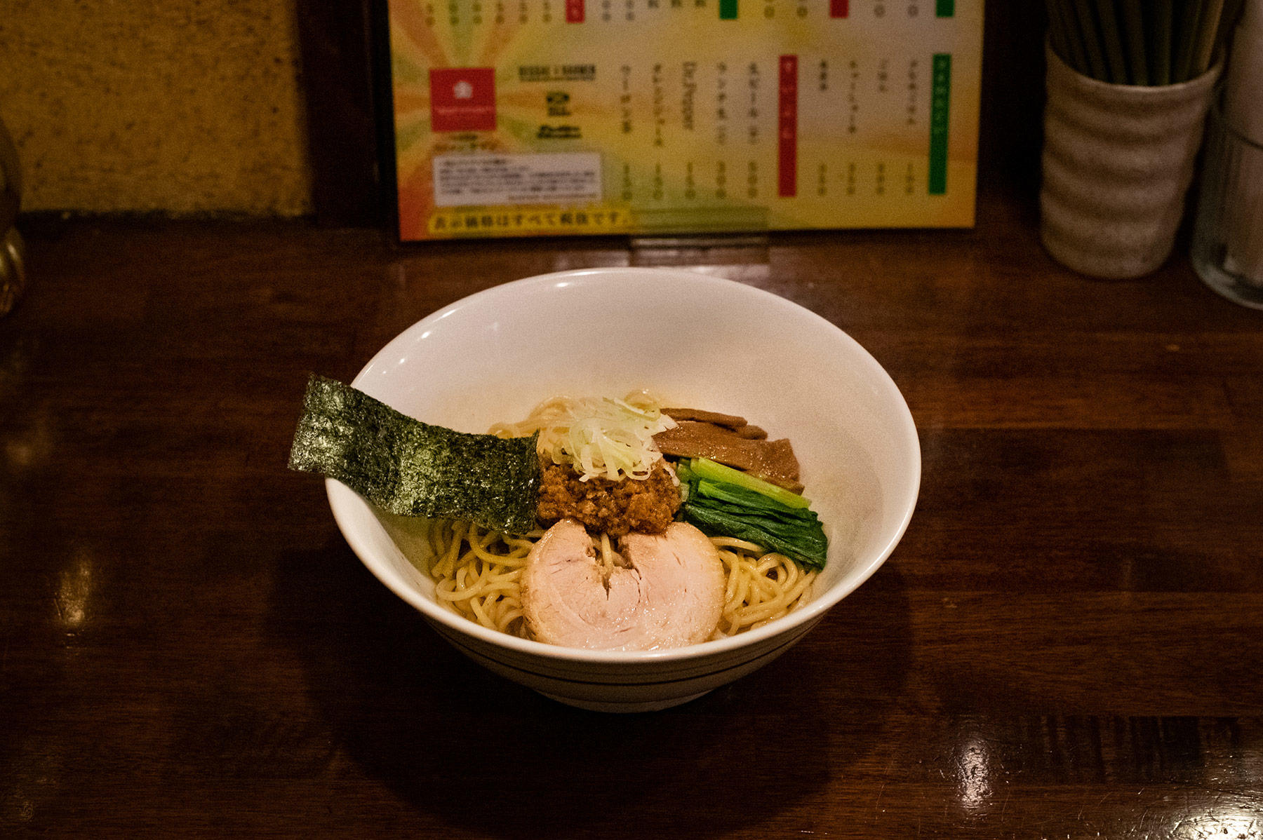 スープは、鶏と豚から取る動物系と昆布や干し椎茸、カタクチ煮干し、節類から取る和だしをブレンドしたもの。ど定番の“らはめん”は、そこに醤油ダレと鶏油、香味油を合わせてつくる。見た目はシンプルながらも、飲み応えはしっかり。複雑な旨味が幾重にも重なり、余韻となっていつまでも続く。「ヤマン」の神髄を伝える、登竜門的存在だ。