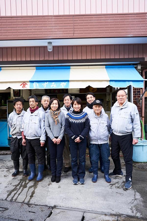 いずみや鮮魚店は、社⻑の原田裕光さん、奥様の洋美 さん、娘の尚佳(ひさか)さんらが家族で経営する鴨川の仲卸業者。1949年の創業以来、地元の漁師・海人と信頼関係を築き、活きが良くて本当に美味しい食材だけを仕入れてきた。そのうちの一人が、宮崎鉄矢さん。春先にはひじき、5月になるとアワビやサザエ、11月からクリスマス頃にかけてはハマグリなど、季節ごとの旬の魚介を個人で獲りながら一年を過ごしている、この地域の主力の漁師だ。「5月の貝は何を食べてもウマイですよ。個人的には酒蒸しが好き。アワビを天ぷらにして塩だけかけて食べるのもいいですね!」(宮崎さん)。
