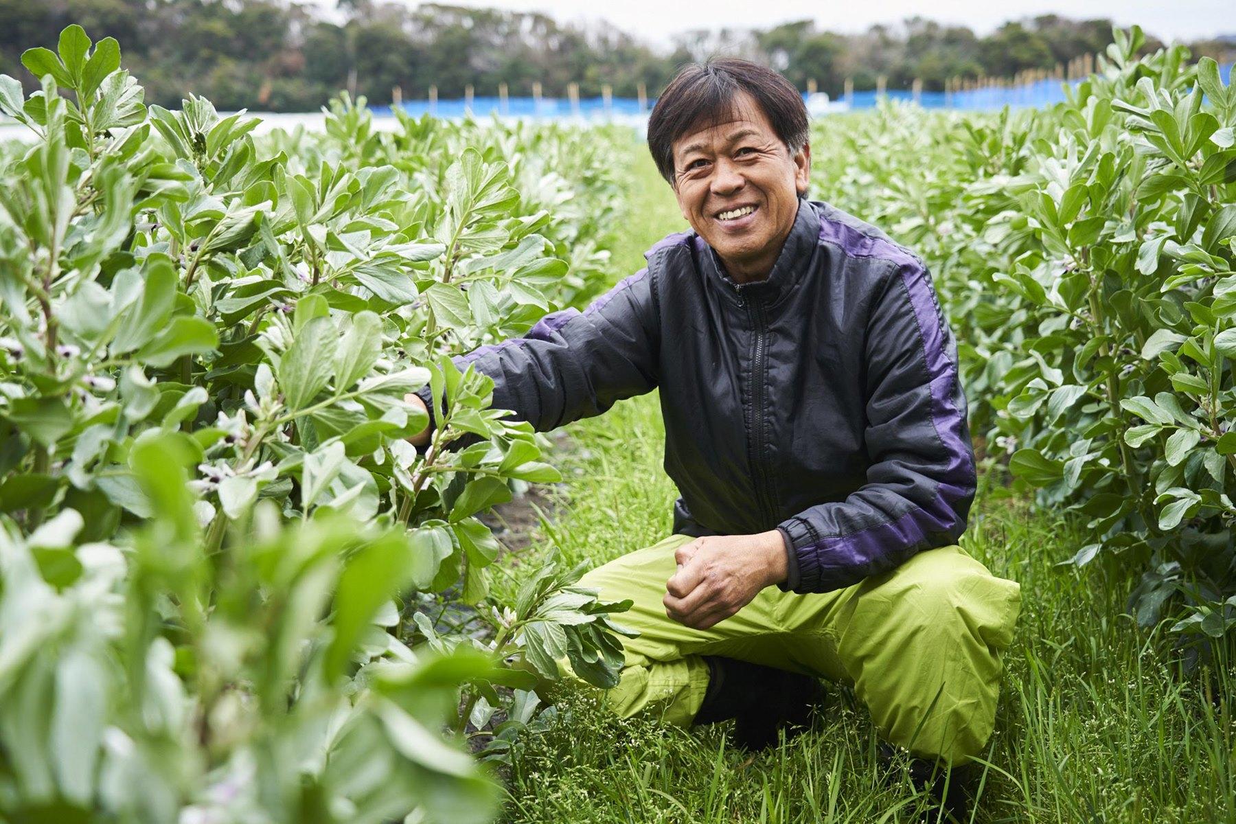 千葉県館山市・安西農園では、甘みのしっかりとした打越緑(うちこしみどり)と生でも食べられるファーベの2種類を栽培している。安西淳さんによると「海に近いこの地域は砂地で水はけがいいから、野菜に余計な水分が入らず旨味が凝縮する」という。