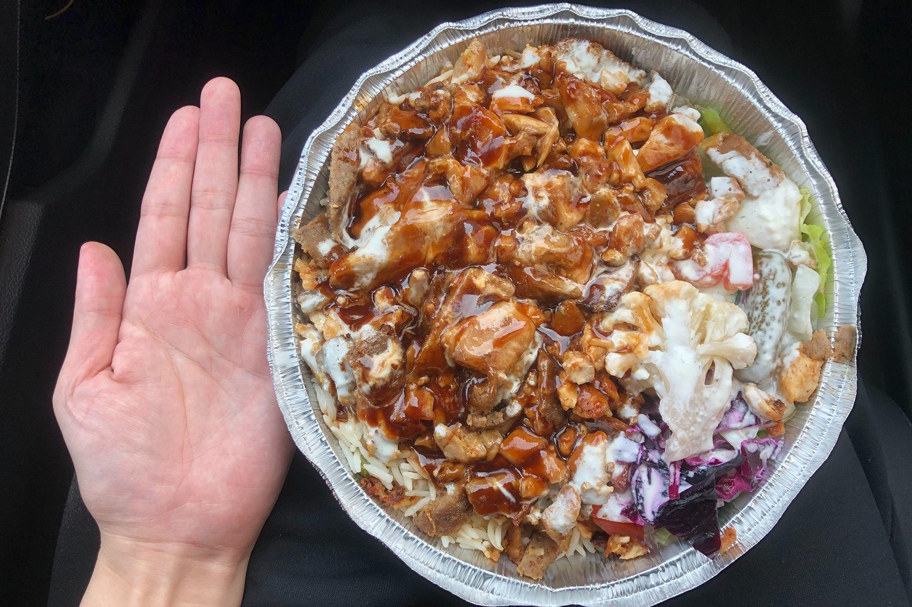 基本的には、ベンダーと呼ばれる屋台のようなところで売られているお弁当で、マンハッタンの街中では至る所で見つけられます。値段も6ドル程で良心的。ニューヨークでは、ファーストフード店でも10ドル程、レストランではチップも含めて最低20ドルは掛かってしまうので、美味しさとボリューム面からもこの値段は破格です。それぞれ系列があったりなかったり。人気のあるベンダーは、5店舗連続で並んでいたり、飲んだ後のシメ飯として夜中にも行列ができるほどです。店によって味も見た目も全然違うので、いろいろなところを試して、お気に入りのベンダーを見つけるのもいいですね。