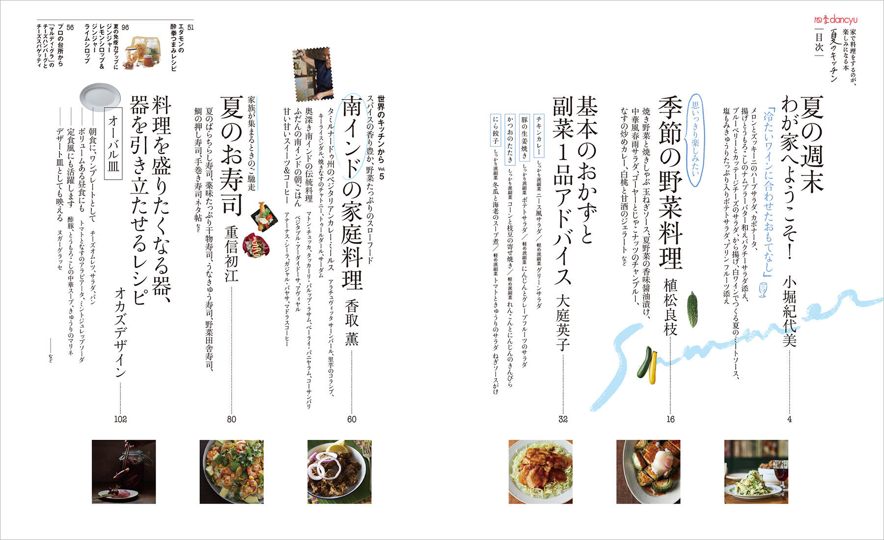 毎年夏にリニューアルを重ね、今号で4年目となる四季dancyuシリーズ。月刊dancyuがとことん美味しいものを突き詰める「ハレ」の料理とすれば、このシリーズは美味しいもの好きの「ケ」の料理を中心としたレシピ集です。