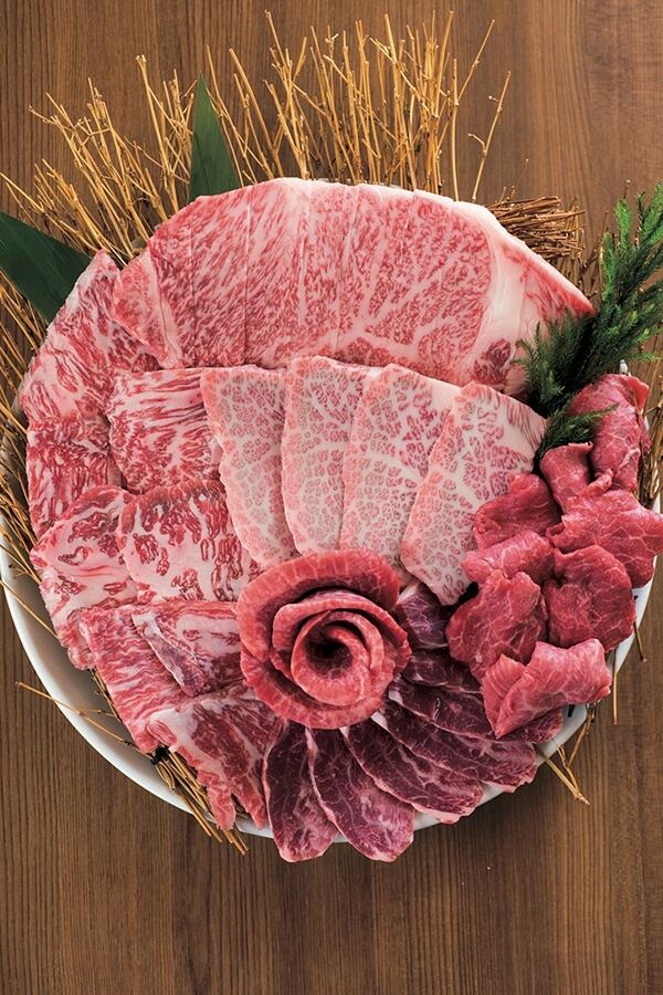 ミスジは肩の肩甲骨の内側に位置し、一頭からわずかしか取れない。名物の“乙ちゃん盛り”は、このミスジなどの希少部位が、ダイナミックに800gも盛り込まれる。いわゆる霜降りの部位が中心なのに、後味が爽快なのは良質な肉の証。肉の卸問屋の意地と誇りの集大成がここにある。