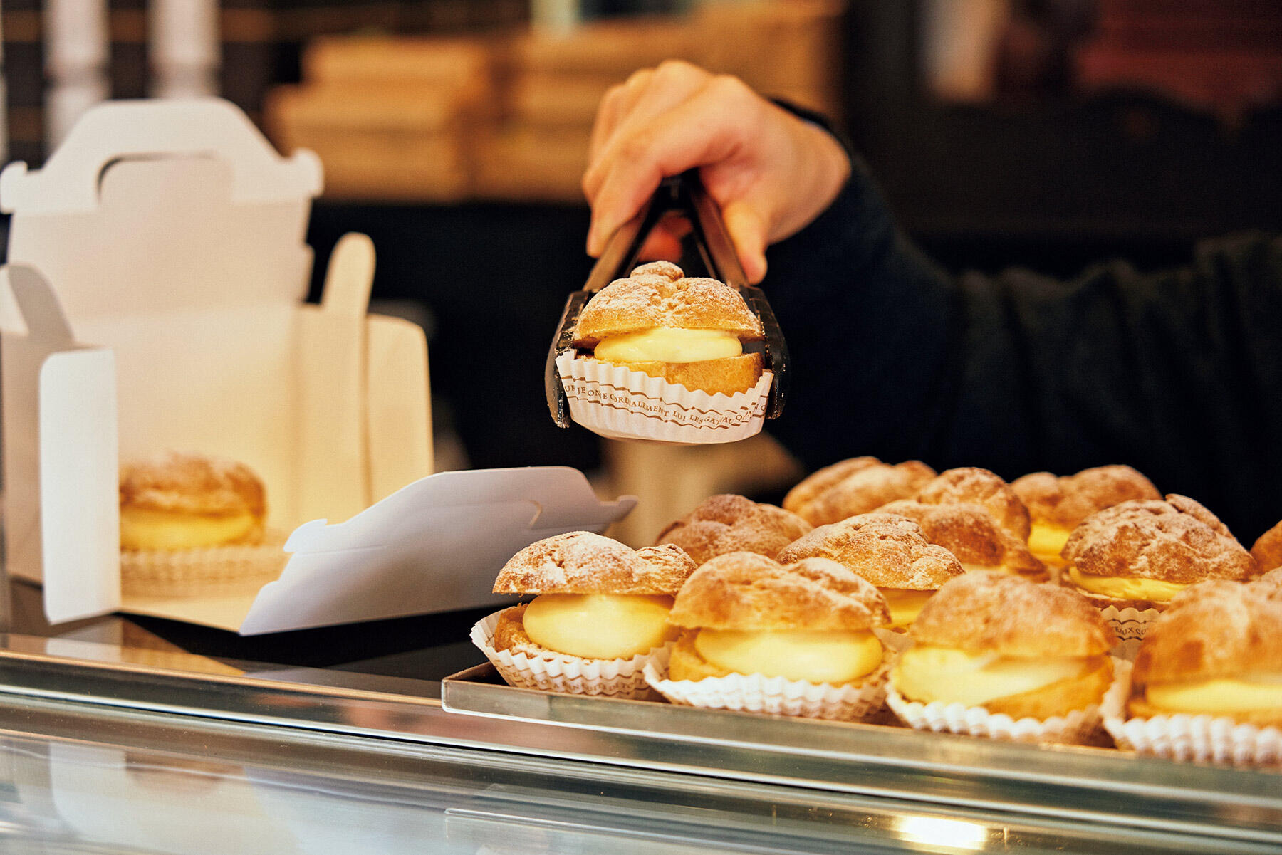 今から十数年前のある日のこと。常連客から「もっと普通のシュークリームをつくって」と口々に言われた。当時つくっていたのは、硬めの生地で生クリームのみを挟み、上をアーモンドで飾ったもの。店主・鈴木徹さんが修業先のフランスでよく見た、本場ではオーソドックスなレシピだ。