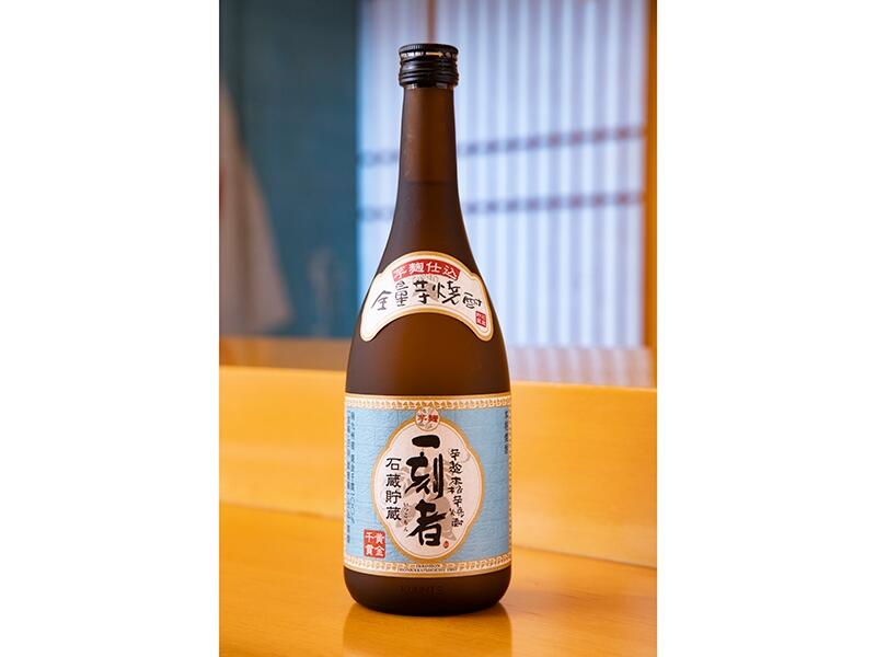 南九州産の黄金千貫を、同じ黄金千貫で造った芋麹で仕込む全量芋焼酎「一刻者」。芋のいいところだけが際立つ上品な風味、そして極めてなめらかなテクスチャーが魅力の本格芋焼酎である。天然石の石蔵で穏やかに貯蔵・熟成させることで、さらに芋の香りが研ぎ澄まされた「一刻者」は、鮨激戦区といわれる銀座で江戸前鮨に寄り添っている。