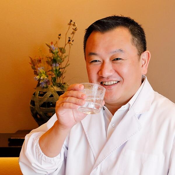 「銀座 小十」店主。ほかに銀座とパリ、ニューヨークに計5店舗を展開する。「薩州 赤兎馬 極味の雫」はストレートが好みとか 。「アルコール度数の高さを感じさせない、なめらかな喉ごし、濃厚な風味が気に入りました」とご満悦。