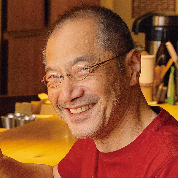 ゆっくりと太陽が沈みはじめた、ある日の夕暮れ時。居酒屋の名店「高太郎」のカウンターで、にこやかにグラスを傾ける作家の吉村喜彦さん。ロックにしているのは、外食で飲む機会が多いという、本格芋焼酎「薩州 赤兎馬」である。